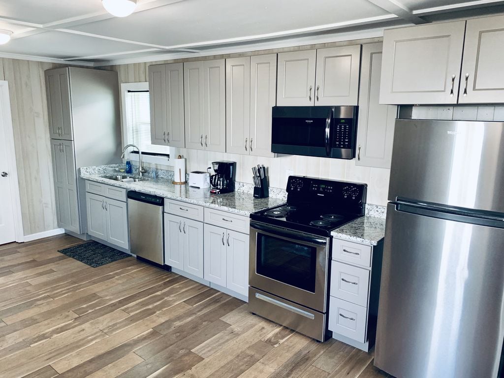 Emplacement fantastique pour la pêche, la chasse ou la détente dans le paradis des sportifs. Situé à Buras sur la rivière. Beaucoup d'espace pour garer un bateau avec une zone de lavage. Grand porche pour passer le temps et un fumoir pour cuisiner. Situé près du Dollar General et d'un restaurant local qui est très savoureux. REMARQUE : pas de Wi-Fi/câble et il y a un espace partagé avec un camping-car sur la propriété. - 3 chambres ; - 2 salles de bain ; - 5 lits jumeaux - 1 lit complet ; - 1 lit Queen Size - Canapé et chaise - Lave-linge et sèche-linge neufs ; - Cuisine - Ustensiles de cuisine.