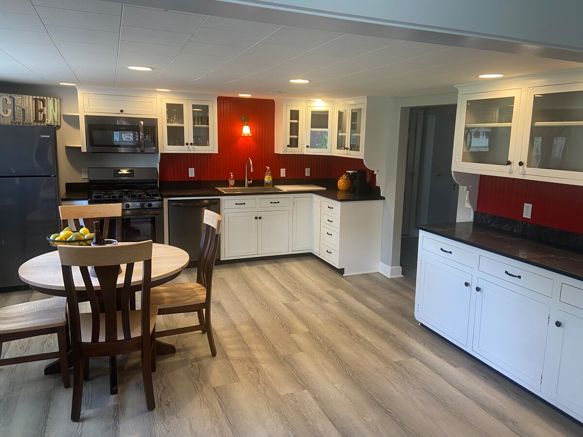 Des vacances avec tout le confort d'un chez-soi. La maison est idéalement située dans le village d'East Burke. C'est une ancienne ferme de 1832 qui a été restaurée et agrandie. La maison est livrée avec une grande cour, beaucoup de stationnement et une aire de jeux de l'autre côté la rue pour les enfants. Elle est meublée pour être chaleureuse et confortable. La maison dispose d'un grand salon avant-arrière, salle à manger, grande cuisine, vestiaire et lave-linge/sèche-linge. Burke Mountain, les sentiers Kingdom et les sentiers VAST sont tous très proches.