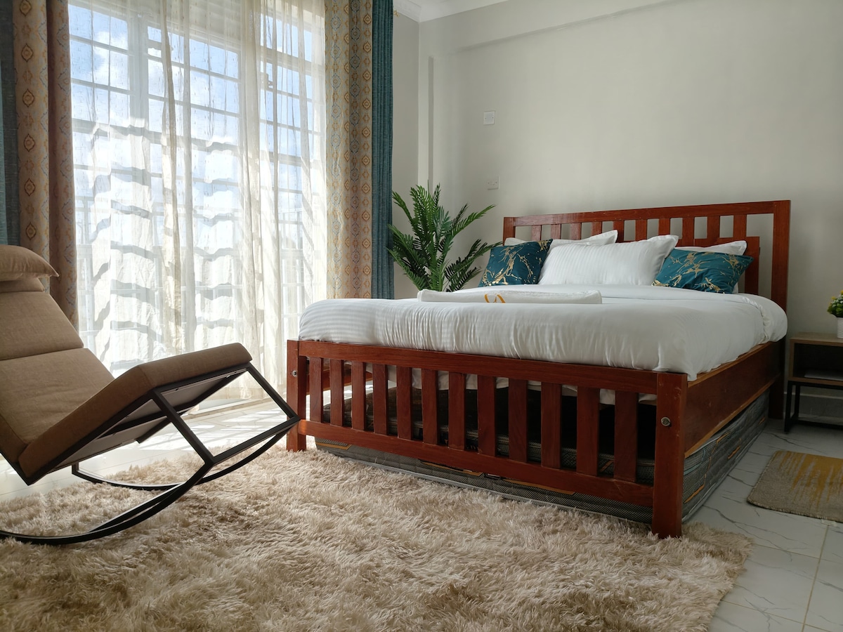 Expérience de luxe et de verdure de bon goût, mieux que chez soi, situé dans un quartier fermé avec une sécurité très stricte, piscine, salle de sport, lavage de voiture, supermarché, restaurant et épicerie, pistes de jogging disponibles dans le domaine. Entièrement meublé, 2 chambres avec tous les équipements de base, situé à 10 minutes en voiture de l'aéroport d'Eldoret et à 10 minutes en voiture de la ville d'Eldoret. Endroit très pratique et calme.