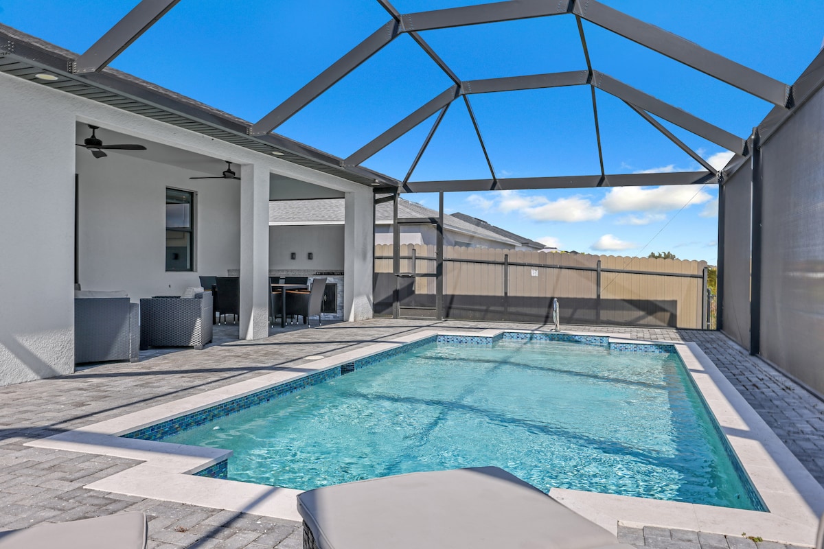 Oubliez vos soucis dans cet espace spacieux et serein Découvrez ce charmant joyau de 3 chambres à Cape Coral. Cette maison pittoresque avec piscine et plage pour les enfants, 1 lit King, 1 lit Queen Size et 1 lit superposé, parfaite pour les familles ou les amis voyageant ensemble. Avec 3 salles de bains dont une baignoire et une douche, une chambre principale et une autre chambre disposent d'une salle de bain privée,les clients peuvent se détendre après une journée d'exploration. Notre logement est équipé pour des séjours longs ou courts pour faire de vos vacances un souvenir inoubliable