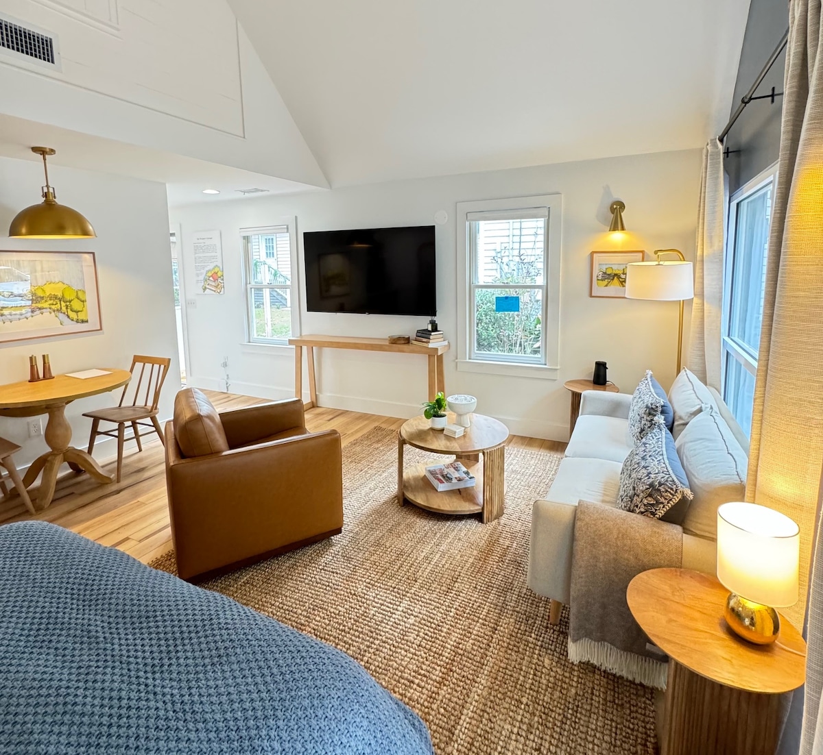 Nous adorons le quartier décontracté, la charmante architecture historique et la promenade de 5 pâtés de maisons jusqu'au bord de mer aéré le long de Bay Street. Le chalet confortable dispose d'une chambre, d'une salle de bain et d'un joli espace de vie sur un terrain de la taille d'un timbre-poste. Le coin petit-déjeuner intégré est notre endroit préféré. Les autres caractéristiques comprennent un mobilier chic, des plafonds de 11 pieds, de hautes fenêtres à battants et un petit porche avant. Parking privé hors rue pour une voiture et télévision connectée/Wi-Fi. Le chalet de 400 pieds carrés porte le nom de la fille de l'architecte.