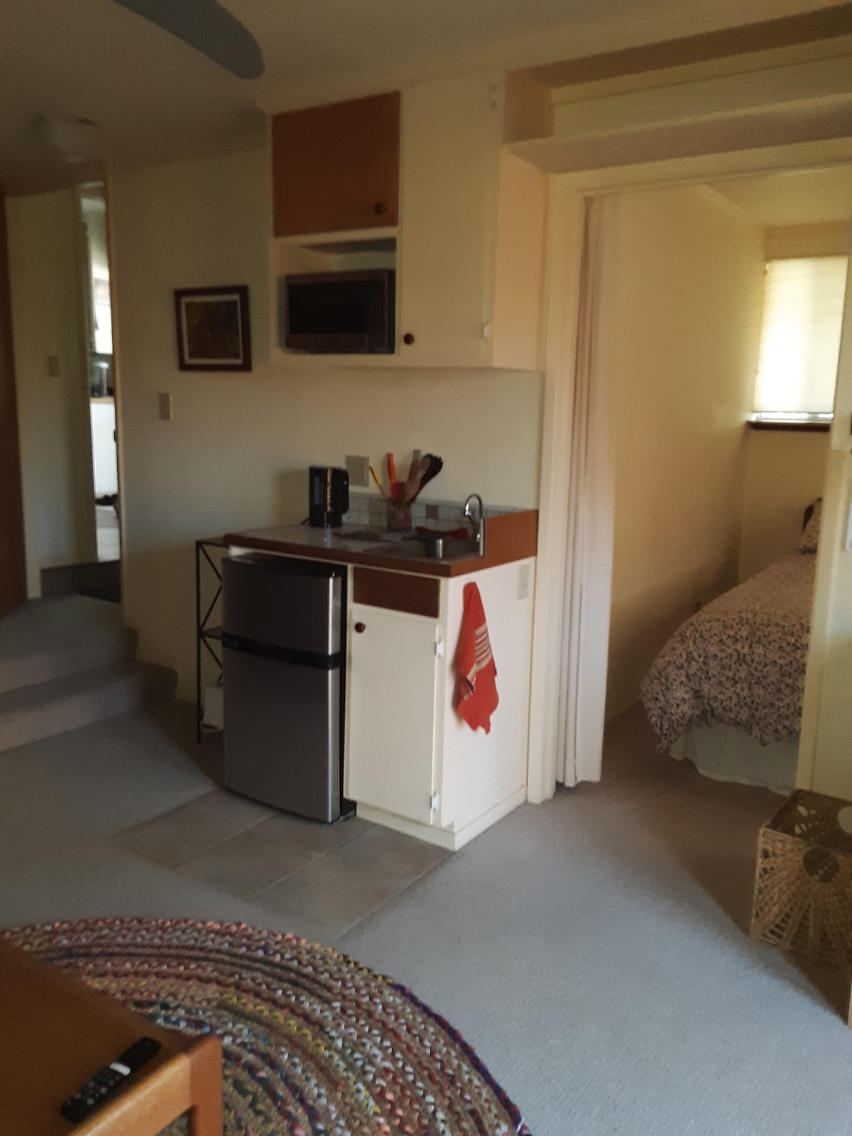Spacieux logement de 500 pieds carrés avec entrée séparée situé au-dessus d'un garage. Il dispose d'une chambre à concept ouvert avec lit Queen Size, canapé avec lit complet gigogne, kitchenette avec réfrigérateur, 2 brûleurs électriques, micro-ondes et Keurig. L'espace dispose d'une télévision avec Wi-Fi et de nombreux équipements qui rendent le séjour confortable. Une grande salle de bains avec baignoire et douche complète l'espace. Interdiction de fumer ou d'amener des animaux de compagnie dans la suite. Idéalement situé à quelques minutes du centre-ville, du collège, de Lower et Upper Bidwell Park.