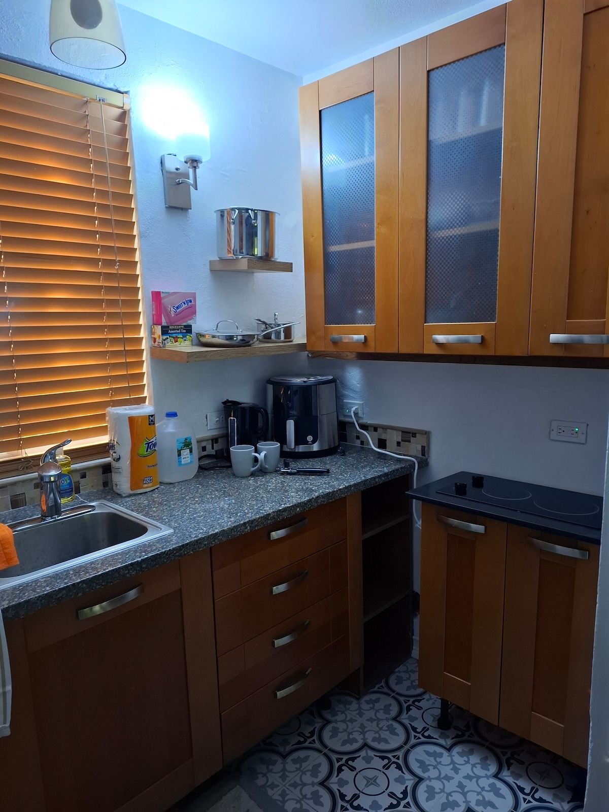 Modern 1BR, 1BA unit in a gated complex with pool access in Westridge, steps to the grocery store, 2-minute walk to the public bus, and minutes from Cable Beach, Baha Mar, and the airport. Features Smart TV with streaming, fast Wi-Fi, backup generator, free parking, Keurig coffee maker with pods, beach towels, beach chairs, snorkeling gear, and pack-and-play on request—perfect for couples and solo travelers visiting The Bahamas.