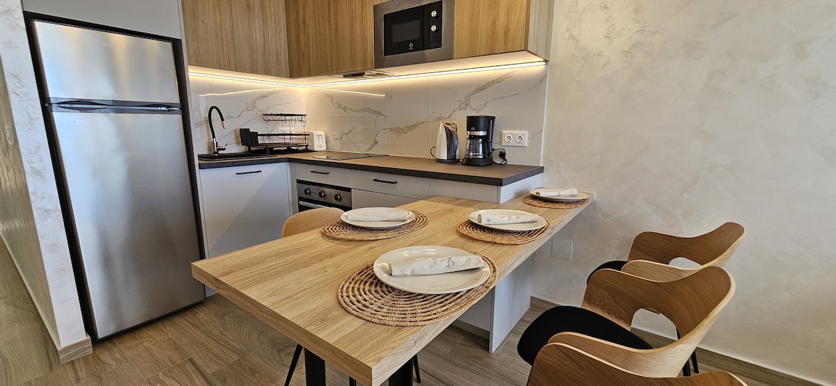 Bienvenue à Seaview Stay à La Mata, Torrevieja – un paisible havre de paix d'une chambre sur la côte, à quelques minutes de la Méditerranée. Profitez d'un balcon privé et d'une terrasse sur le toit offrant une vue imprenable sur la mer, idéaux pour admirer le lever du soleil. À l’intérieur, vous trouverez la climatisation, le Wi-Fi, une cuisine entièrement équipée, des produits de première nécessité et un lave-linge. Idéal pour les couples ou les voyageurs en solo à la recherche d'une escapade relaxante au bord de la plage.