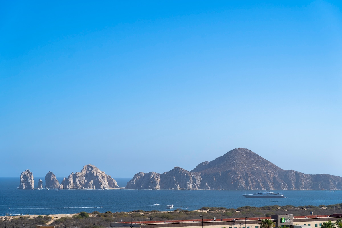 SPECTACULAR VIEWS just a 5 minute drive to the Arch Landmark and incredible Medano beach. Manager available to help you, airport pick ups for a better fee. Rooftop Pool, hottub, firepit and gym equipment. Full length mirror. Front desk 24/7 Concierge is included for your reservation by contacting Fernando our co-host. Restaurants and coffee shops near. We would love to assist you to make your vacation perfect. We recommend contacting our manager for airport transportation.