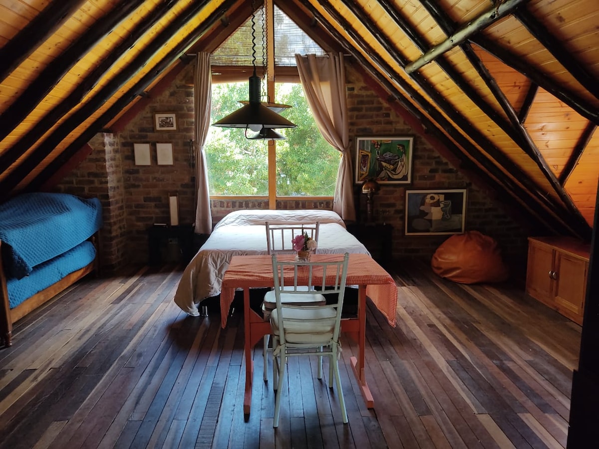 In a corner of the Andes where only the birds can be heard, an old sand mine was retaken by the forest. There the children run with their dog and invent unusual games around the tree house. You can invent recipes in the kitchen, have a barbecue in the garden or have a coffee with friends around the campfire. The cabin just 3km from the historic center of Chía on big closed garden that provides theconnection with the good things in life.