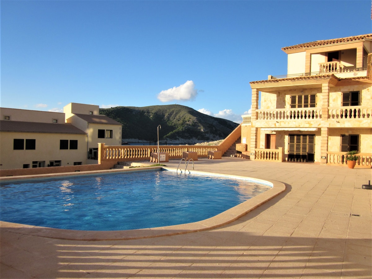 Il se compose d'une cuisine entièrement équipée et d'un salon-salle à manger avec une vue imprenable sur la mer et le port ; 2 chambres, la principale avec la possibilité de deux lits simples ou d'un lit double, ainsi qu'une salle de bain complète et un WC. Il dispose de la climatisation dans le salon et dans la chambre principale. Il dispose également d'un petit balcon pour profiter d'un beau petit déjeuner en admirant la vue sur les bateaux et la mer. Comprend : WIFI, télévision par satellite, lave-linge.