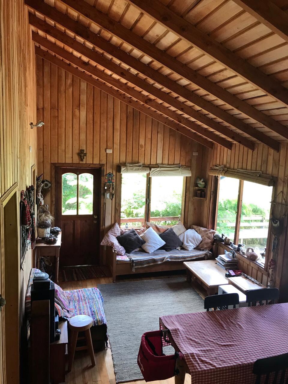 IG @casavacancespanguipulli Cabane confortable dans le sud du Chili, idéale pour programmer vos journées d'aventure et de repos. Situé à 4 km du centre urbain de Panguipulli, région de Los Ríos. Sur un terrain totalement indépendant et entouré d'une nature luxuriante. Un endroit spacieux, confortable et privé pour trois personnes. La tranquillité de cet endroit vous plaira !