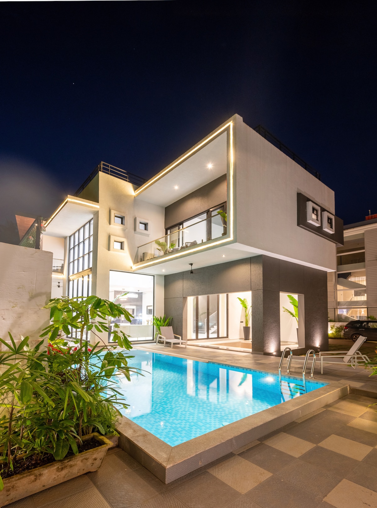 Créez des souvenirs dans cet endroit unique et familial à seulement 15 min en voiture de la plage d'Anjuna et à 5 min de Panjim. Avec 4 chambres somptueuses, une salle aménagée avec accès direct à une piscine privée, l'endroit offre la meilleure expérience ! ! L'ambiance tropicale de Villa complète l'expérience globale de Goa. Nous proposons également la cuisine entièrement équipée avec une aide pour toutes vos envies de minuit. Le logement entier est géré par Orupools. La villa dispose également d'une alimentation de secours 24 h/24, 7 j/7 pour un séjour sans tracas.