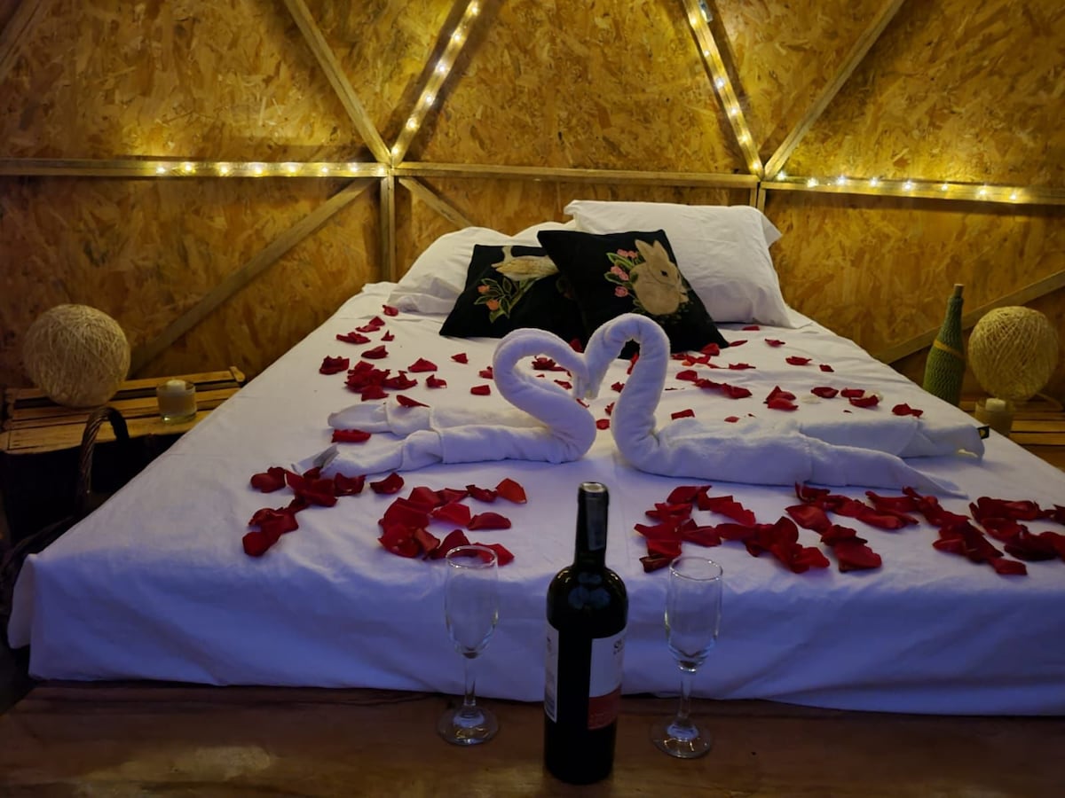 Descubre la magia de la intimidad en nuestro domo campestre diseñado exclusivamente para parejas que buscan una escapada romántica. Sumérgete en el lujo de nuestra bañera de agua caliente, donde el agua caliente se convierte en el cómplice perfecto para crear momentos especiales. Desde el diseño encantador hasta la decoración cuidadosamente seleccionada, cada rincón de nuestro domo está lleno de romance. Reserva ahora y descubre Glamping Horse.