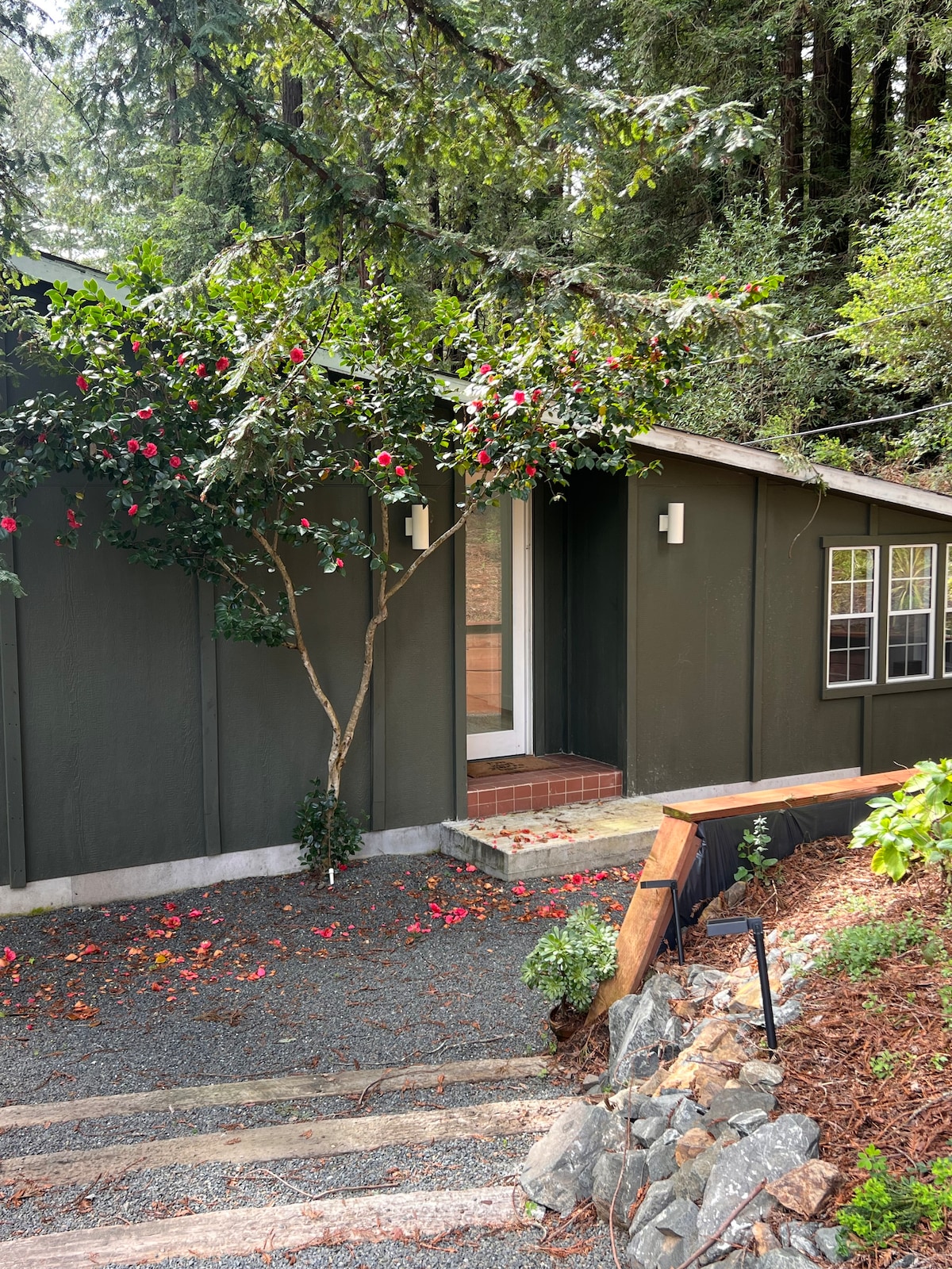 Bienvenue dans notre spa privé, rénové et personnel dans la forêt. Comprend un grand sauna finlandais au feu de bois, il dispose d'une terrasse pittoresque avec plongée chaude/froide sur une forêt à couper le souffle intacte avec un côté vignoble. Ce chalet entièrement en cèdre est niché sous le vignoble de Halleck, l'un des prestigieux domaines viticoles du comté de Sonoma. Une retraite parfaite, vous êtes situé au centre pour le meilleur de Sonoma Dégustations de vin dans le comté de Sonoma (0 à 20 min) Bodega Bay (20 min) Redwoods géants Armstrong (30 min)