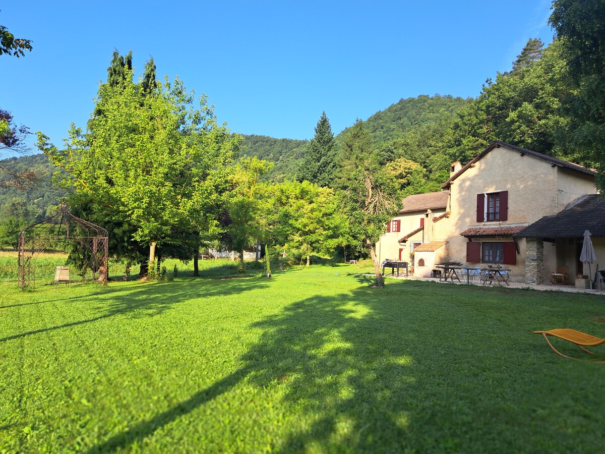 Terrasse panoramique sur le toit, four à pizza et baignade dans la rivière