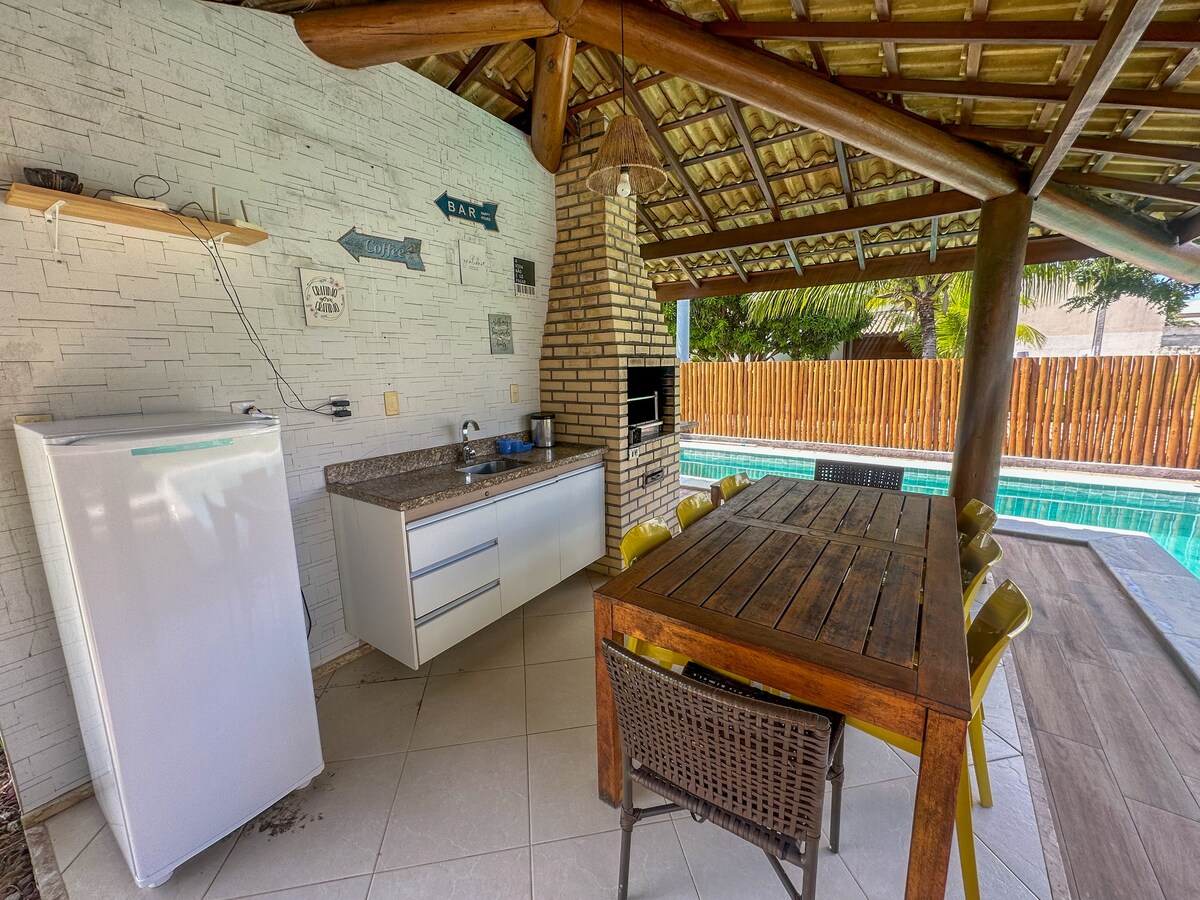 Maison à 2 min à pied d'une plage avec drapeau bleu ; 158 m 5 suites avec climatisation, placards et 100 % occultation pour 10 personnes (4 lits doubles et 2 lits jumeaux) Piscine, barbecue, jardin, lave-vaisselle Nettoyage quotidien de la piscine et de la maison inclus, sauf le dimanche Internet HS 500 mb Sécurité communautaire avec caméras et patrouille 24h/24 ; accès à la maison surveillé Piste cyclable avec vue sur l'océan, terrains de sport Maximum 10 personnes de plus de 2 ans Consommation d'énergie et d'eau jusqu'à 40 R$ / jour. Un excédent sera facturé au moment du paiement.