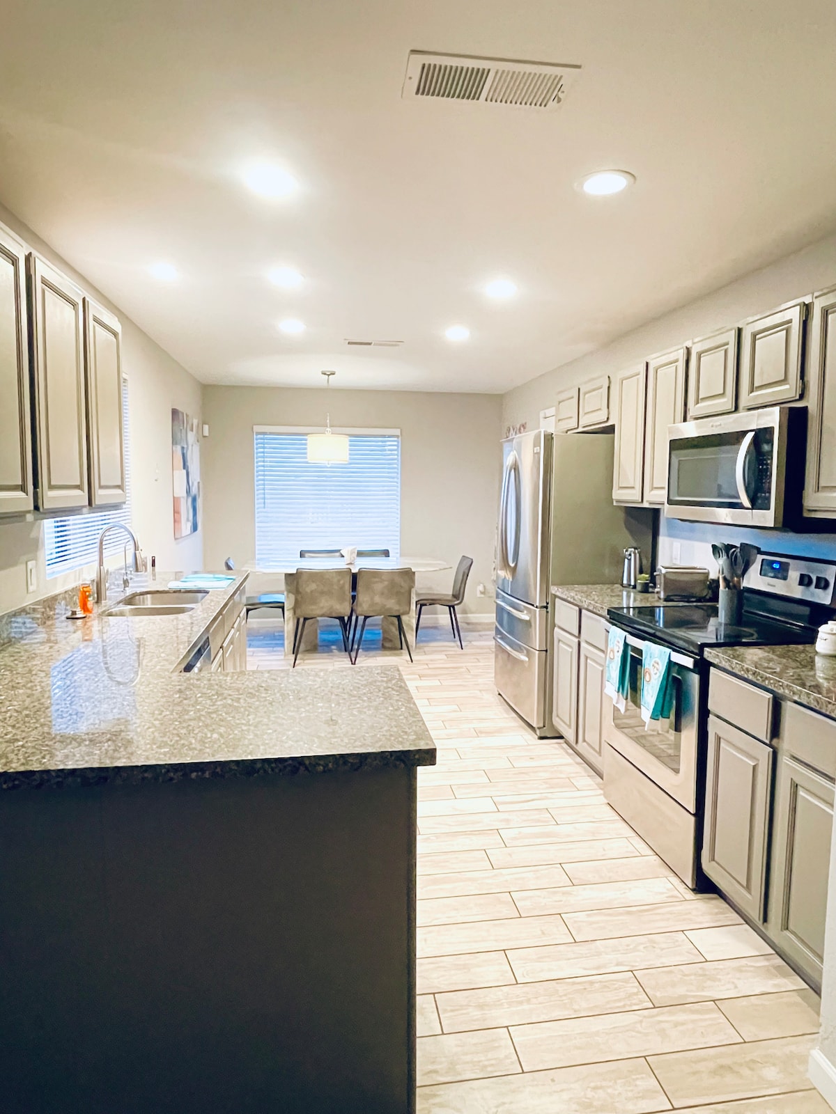Logement entier à votre disposition ! Maison confortable de 3 chambres et 2 salles de bain située à seulement 10 minutes de Westgate et du stade des Cardinals. Profitez de tout le luxe avec un lit King Size dans la chambre principale avec une salle de bain privée et 2 lits Queen Size dans leurs propres chambres privées. Il y a un parking gratuit sur place et une connexion Wi-Fi gratuite. Séjour et salle à manger spacieux avec une cuisine entièrement équipée. Notre petite maison offre le mélange parfait de beauté et de paix dans la merveilleuse ville de Litchfield Park et le confort luxueux d'un chez-soi.