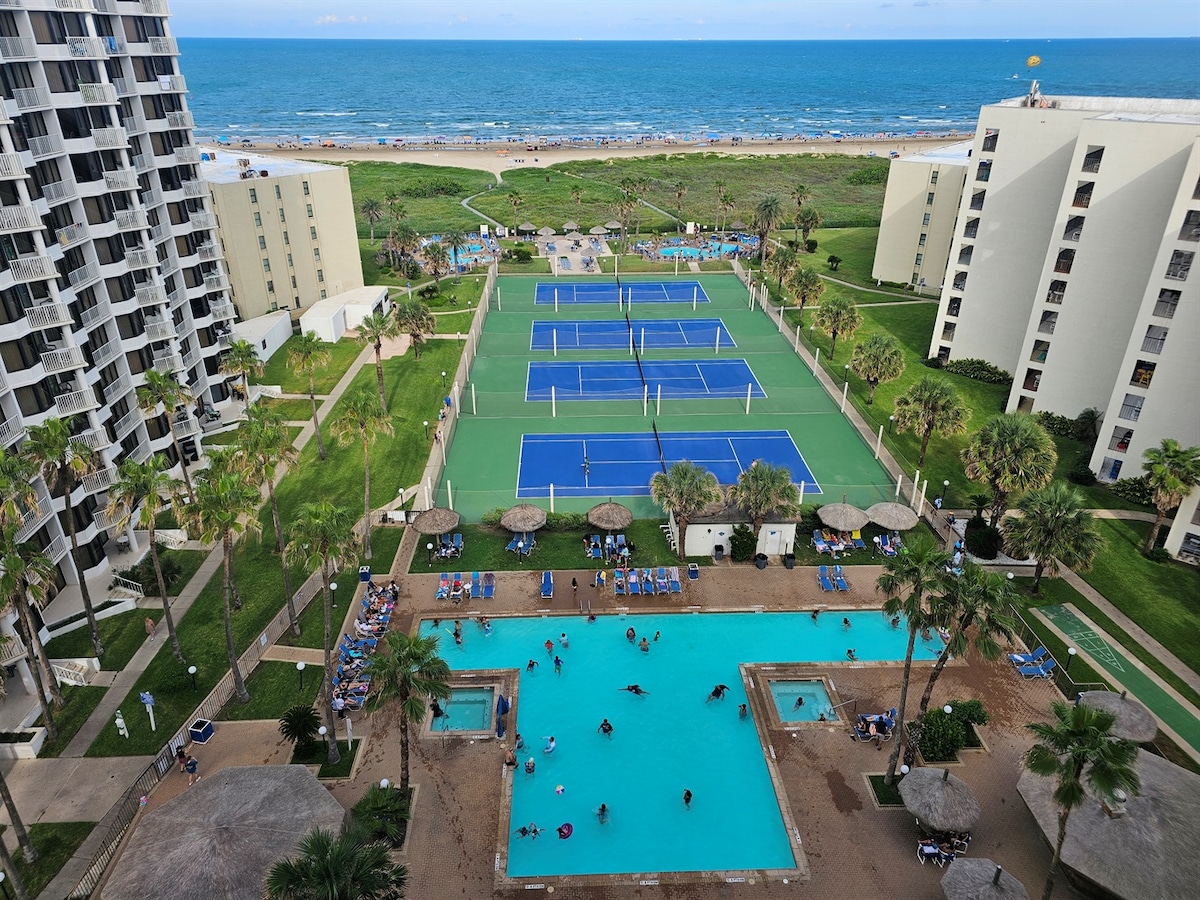 Escape to a peaceful beachfront retreat on South Padre Island. The Space: 2BR/2BA second-floor condo with a private ocean-view balcony. Work & Play: Dedicated workspace with fast Wi-Fi and a 55" TV for rainy days. Chef’s Kitchen: Fully stocked for family meals. Resort Perks: Access to heated pools, hot tubs, tennis courts, and a kids' splash pad. All the comforts of home, with the beach as your backyard.