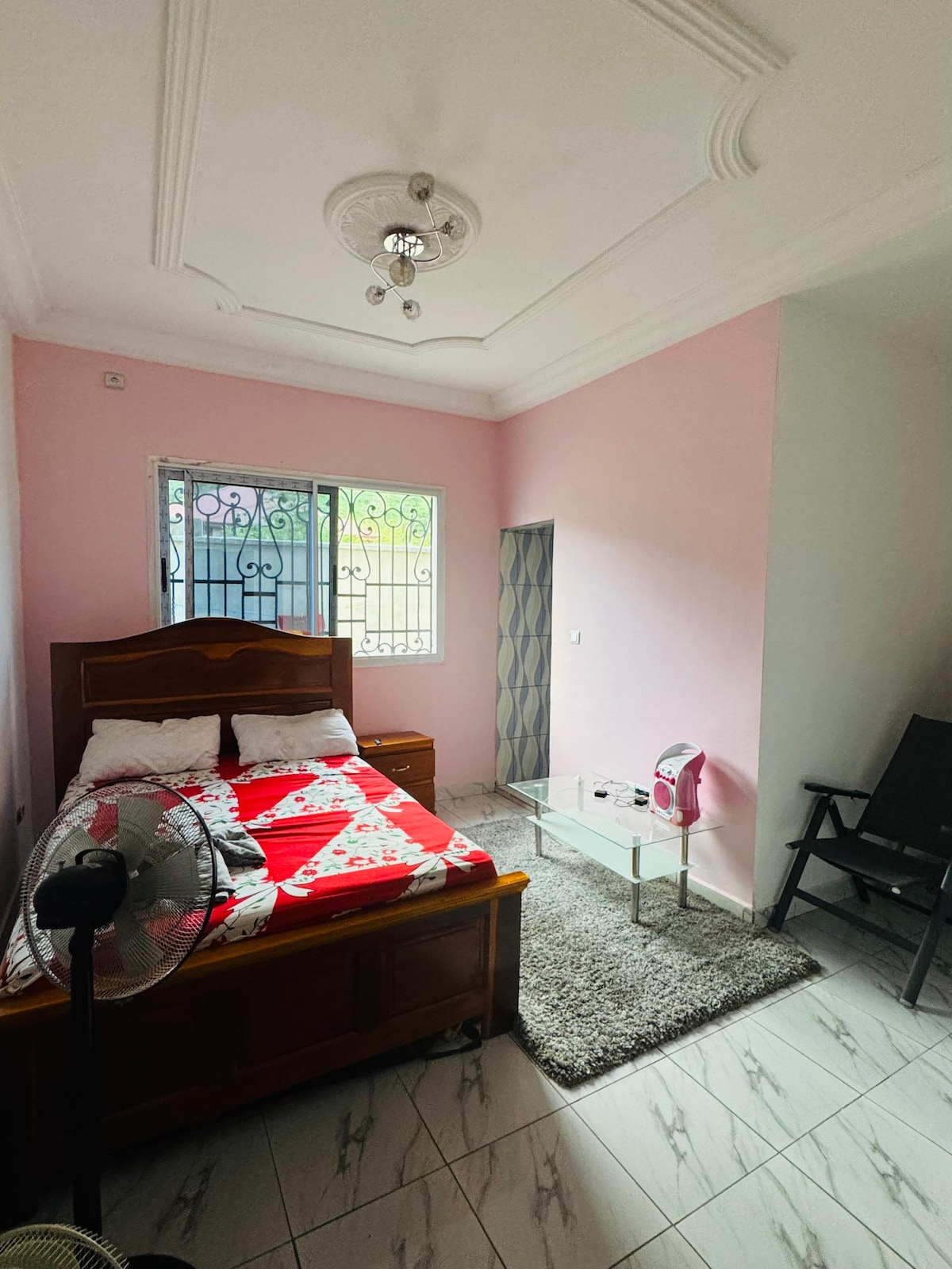 Bienvenue à la villa Familiale à Kribi, un paradis sur la côte camerounaise. Profitez de 3 chambres, 2 salles de bains, un séjour, cuisine équipée et terrasse. À 10 min des Chutes de Lobe, 7 min de la plage et du centre. Groupe électrogène dispo (gazole à charge). Frais de ménage inclus, mais merci de respecter le matériel et faire la vaisselle. État des lieux fait par la gouvernante, dégradations facturées. Check-in : 15H-22H MAX | Check-out : 13 H Paiement via plateforme uniquement.