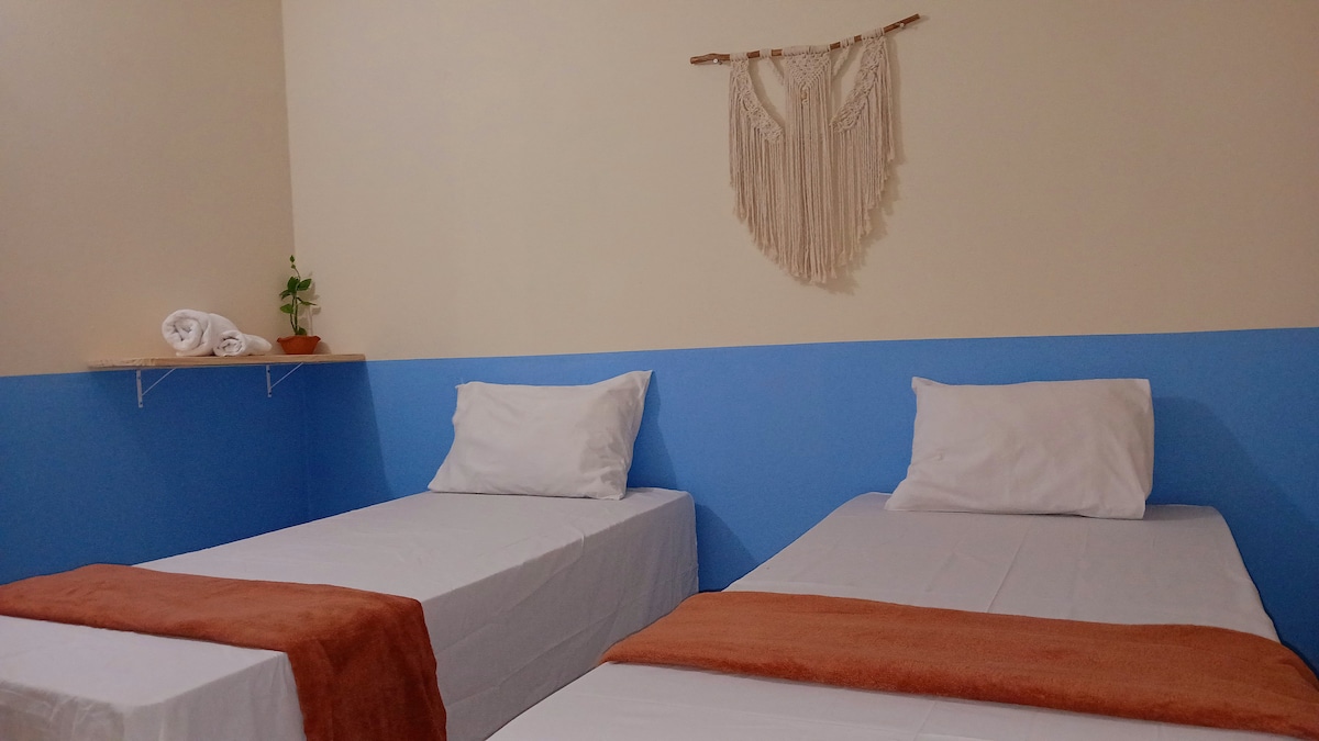 Un espace calme, proche de l'avenue principale. Équipé d'un réfrigérateur, micro-ondes, wifi, vaisselle, placard, table, lit double, filets, ventilateur. À 12 min de la plage, avec plusieurs restaurants en bord de mer, avec de la musique live et une cuisine excentrique.