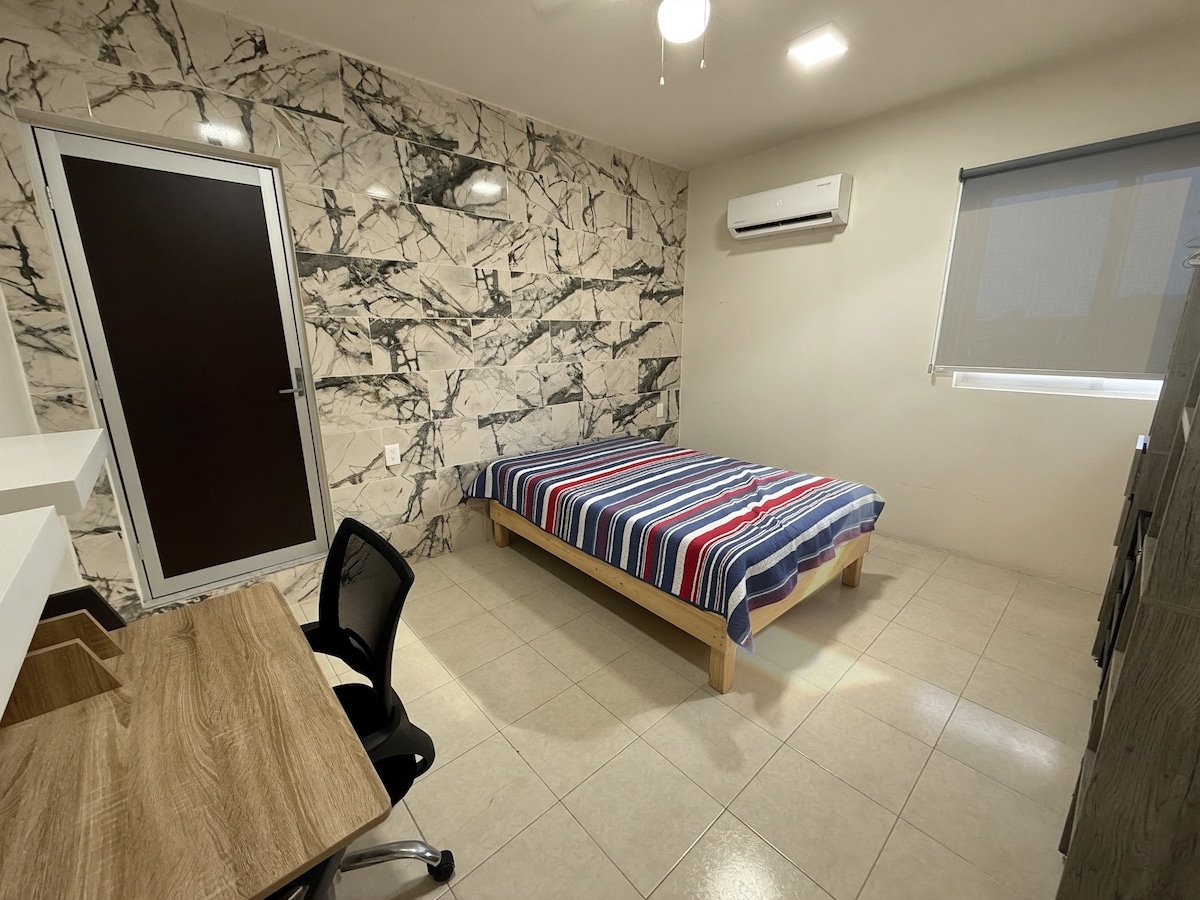 Departamento cómodo, funcional y bien ubicado, ideal para una persona o pareja. Perfecto tanto para descansar como para trabajar, ya que cuenta con aire acondicionado, WiFi estable y área de trabajo. Espacio tranquilo, seguro, práctico y sin complicaciones, con lo necesario para una estancia cómoda. Ideal para estancias cortas o largas, ya sea por viaje, trabajo o necesidad temporal. Incluye estacionamiento gratuito para mayor comodidad durante tu estancia.