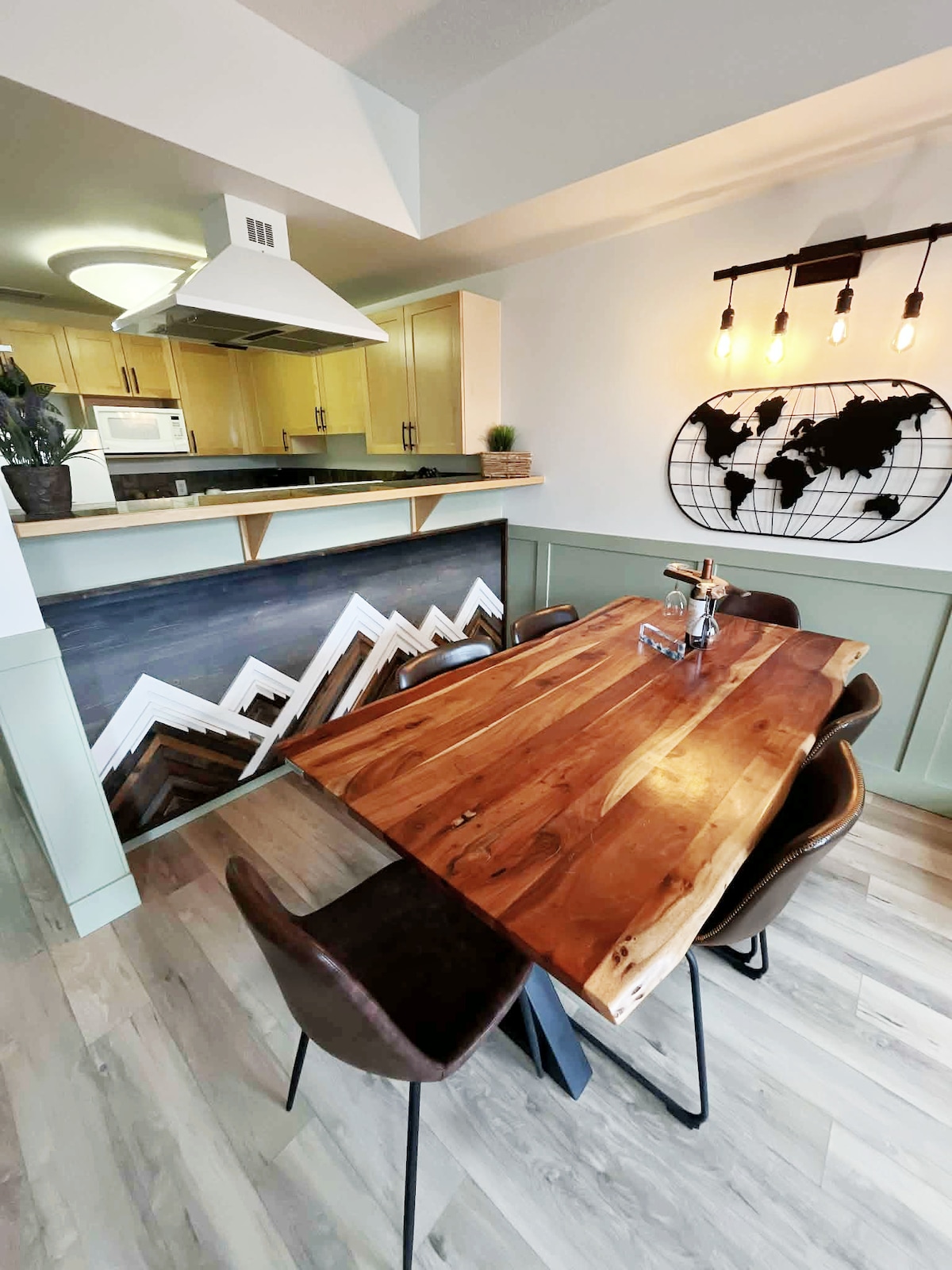 Bienvenue dans notre confortable logement d'angle avec vue imprenable sur la montagne depuis chaque fenêtre ! Notre retraite calme et paisible est l'endroit idéal pour se ressourcer après une journée en montagne ! La suite est récemment rénovée et meublée, et a été soigneusement conçue pour votre confort. Restez connecté avec une connexion Wi-Fi haut débit illimitée dédiée, asseyez-vous et profitez d'une émission sur une élégante télévision connectée de 50 pouces. Promenez-vous jusqu'aux restaurants, boutiques et au centre-ville de Canmore à quelques kilomètres de la porte !