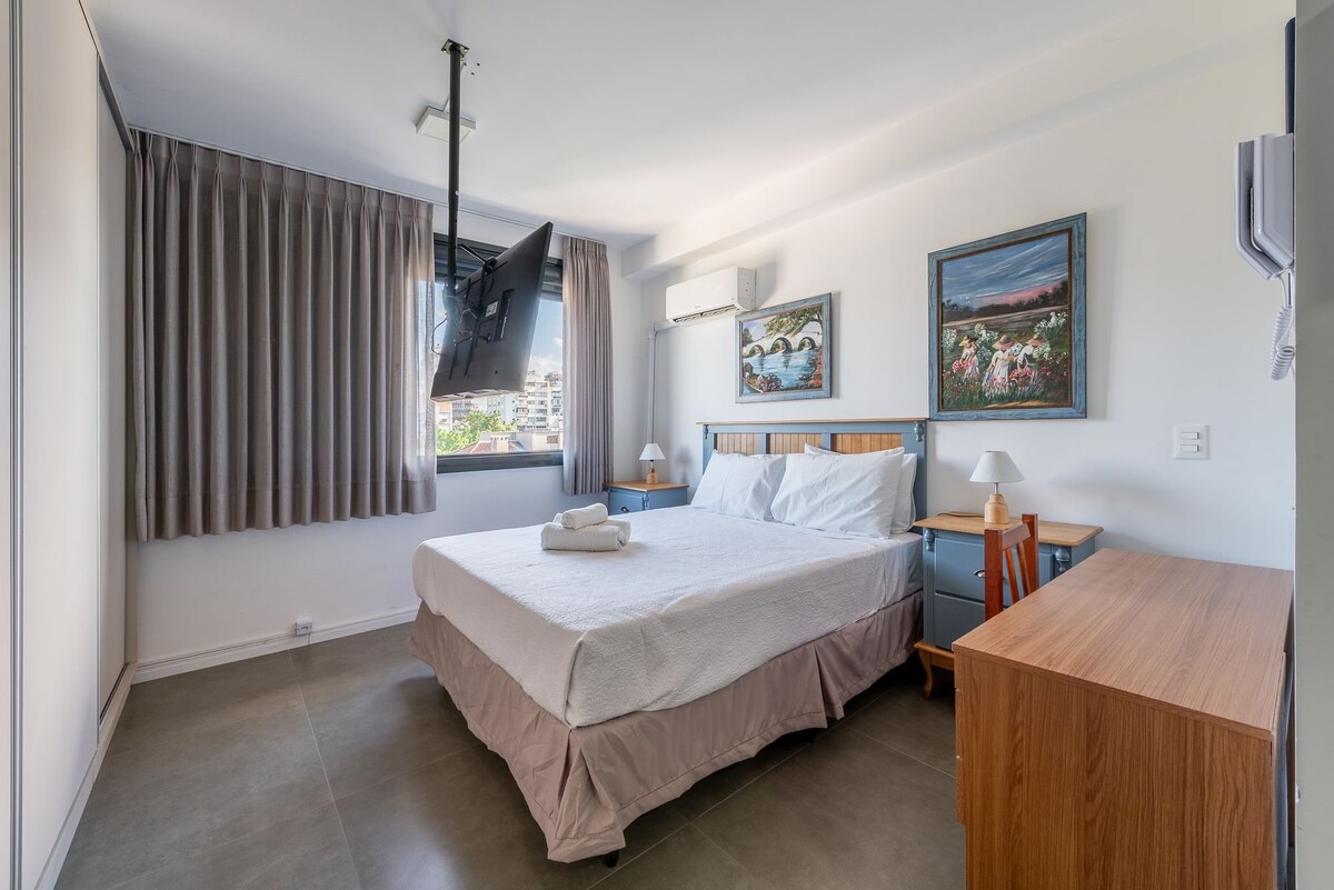 Profitez d'une expérience élégante dans cet endroit bien situé et différent. Nous sommes situés sur l'Avenue 24 de Outubro, à 20 mètres de la très animée Rue Nova Iorque, dans l'un des quartiers les plus charmants de POA. Décoré et conçu pour votre bien-être, nous voulons que vous vous sentiez chez vous ! Avec tout le confort et les plaisirs qu'un bon hôte peut offrir ! De l'espace : Chauffe-eau Canapé Bureau Table de salle à manger Nespresso Sèche-cheveux Lit Queen Lit supplémentaire Linge de lit et serviettes de bain haut de gamme