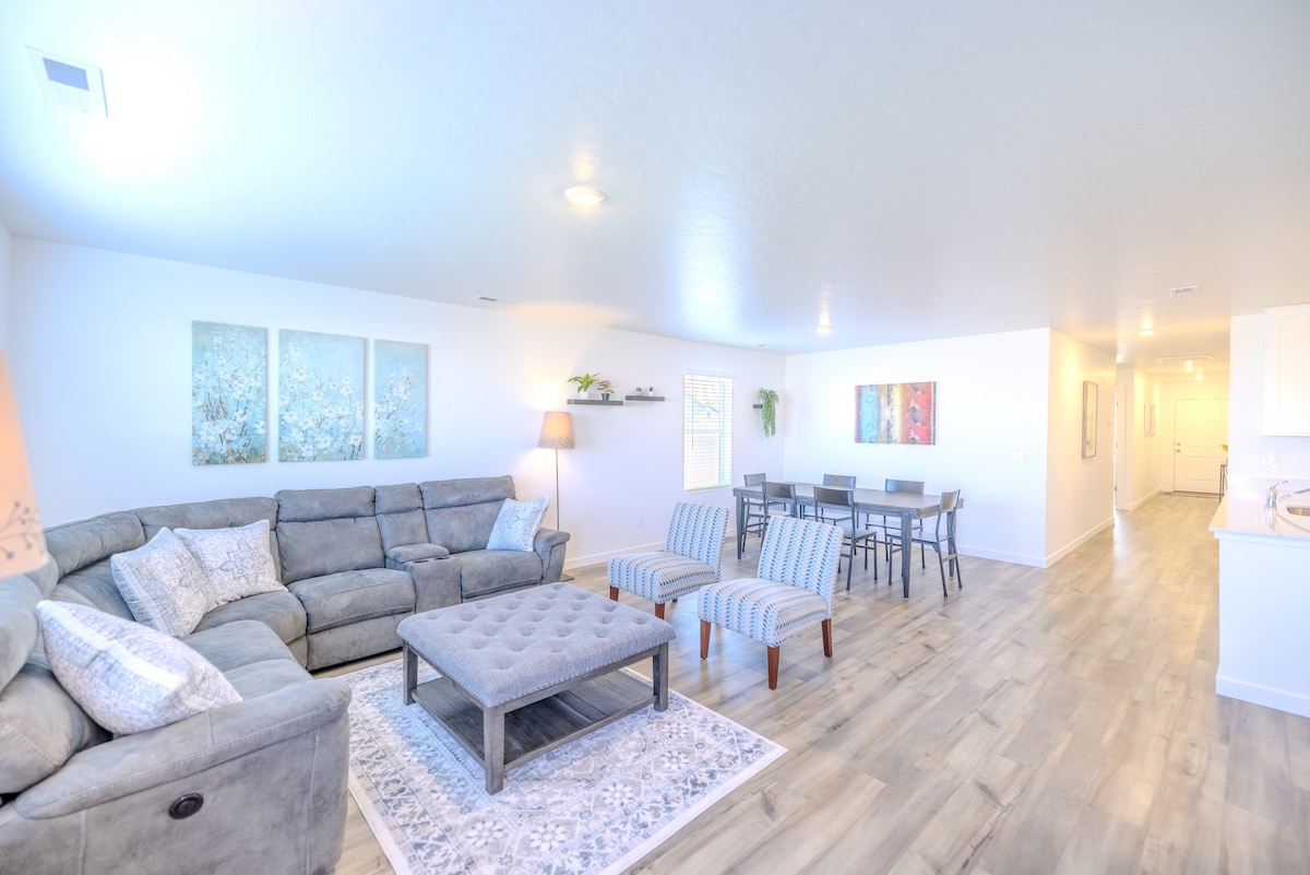 Maison spacieuse et élégante construite en 2024 dans un quartier de Nampa presque terminé. Avec 5 chambres, 3 salles de bains complètes, une grande pièce voûtée, un loft ouvert et des comptoirs en quartz, c'est parfait pour les familles, les groupes ou les couples. Profitez de la lumière naturelle, des équipements modernes et d'un cadre paisible, à seulement 8 minutes du Ford Idaho Center, 10 minutes de l'autoroute et 24 minutes du centre-ville de Boise. L'endroit idéal pour se détendre après vos aventures dans la Treasure Valley !
