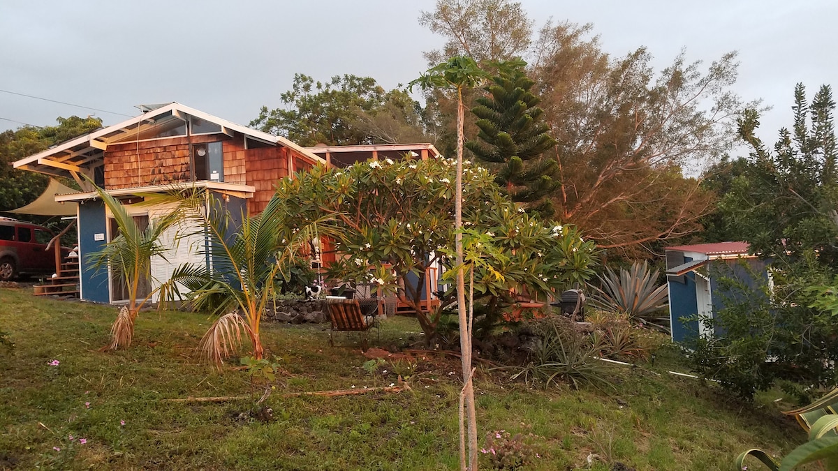 Découvrez la vie hors réseau ! À l'origine, une cabane à café de Holualoa, une micro-maison, mais elle dispose d'une cuisine complète, d'un frigo pleine grandeur, de nombreux placards et d'une plaque de cuisson à 5 feux. La chambre dispose d'un matelas confortable de taille Queen Size, d'un canapé/lit futon pour les voyageurs supplémentaires. Profitez de repas à l'extérieur sur un lanai avec vue fabuleuse sur l'océan. Le logement dispose de nombreux arbres fruitiers et mac. C'est un endroit paisible pour vous évader. Louer une voiture est fortement recommandé.