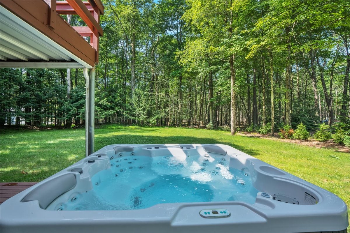 Bienvenue chez Johnny's by the Lake ! Évadez-vous dans les Poconos avec cette maison privée à quelques pas du lac et de la plage. Détendez-vous sur la terrasse avant ou près du jacuzzi isolé à l'arrière. Détendez-vous dans le salon et la salle à manger ouverts et ensoleillés. Passez le crépuscule à profiter de la véranda quatre saisons qui offre un accès facile à un terrain boisé privé et à un foyer. La maison de 3 chambres et 2 salles de bain est entièrement équipée avec des draps, des serviettes et des couvertures confortables. Âge minimum de location : 25 ans.