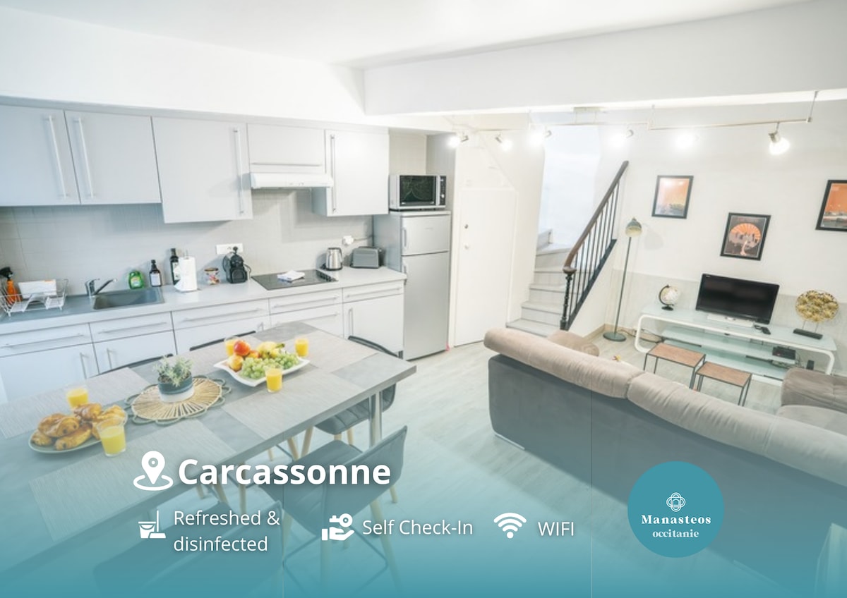 Au pied des remparts et d’un escalier un peu secret menant au cœur de la Cité médiévale, notre charmante maison entièrement rénovée et équipée est idéale pour votre famille ! Vous y profiterez au mieux de ce merveilleux monument et vous détendrez dans un endroit serein et confortable à la décoration soignée. Les 2 chambres ont chacune leur salle de bains (douche) et un écran de télévision, comme à l'hôtel.
