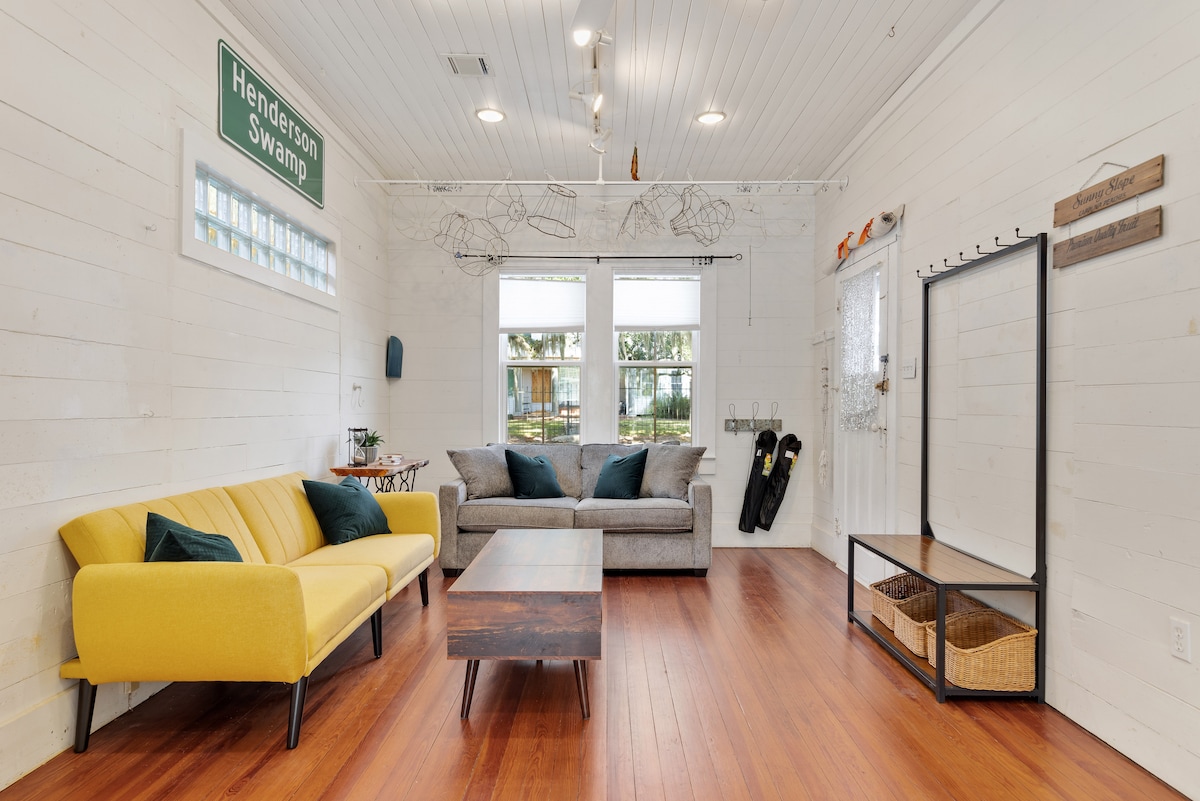 La maison Evangeline est l'endroit où le style chic rencontre le design élégant. Sensation moderne du milieu du siècle avec des planchers de bois franc originaux. Appareils en acier inoxydable et plans de travail en granit dans la cuisine. Lave-linge et sèche-linge inclus dans l'appartement. Cette maison unique est située à 5 minutes de l'autoroute et à 2 minutes de l'université de Louisiane dans la rue la plus pittoresque. Il est idéalement accessible à pied depuis tous les grands magasins et restaurants que le centre-ville de Lafayette a à offrir. *NOUVEAUX matelas*
