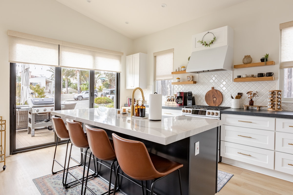 Bienvenue à The Cutest Little Beach House, un havre de paix niché au cœur de Carlsbad, parfait pour les familles et les groupes sereins à la recherche d'une escapade relaxante. Ce mini complexe offre une retraite charmante où vous pourrez vous détendre et créer des souvenirs chéris ensemble. - Plus de 2 000 pieds carrés - Entièrement rénové - À quelques pas de la plage - Gym/Peloton - Grande salle de jeux - Pass jeu X Box ; - Salle de Lego - Chargeur Tesla - Spa d'eau salée - Cuisine de chef ; - Lit King Size - Espace de travail dédié/imprimante - Toit-terrasse
