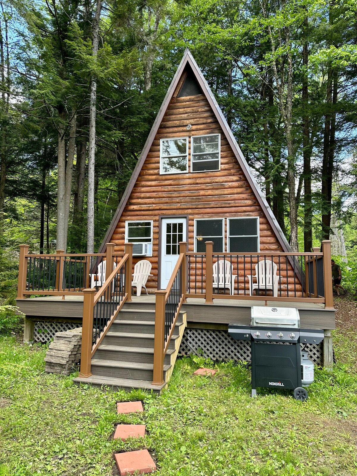 Chalet en A au bord du lac dans les ADK avec sports nautiques