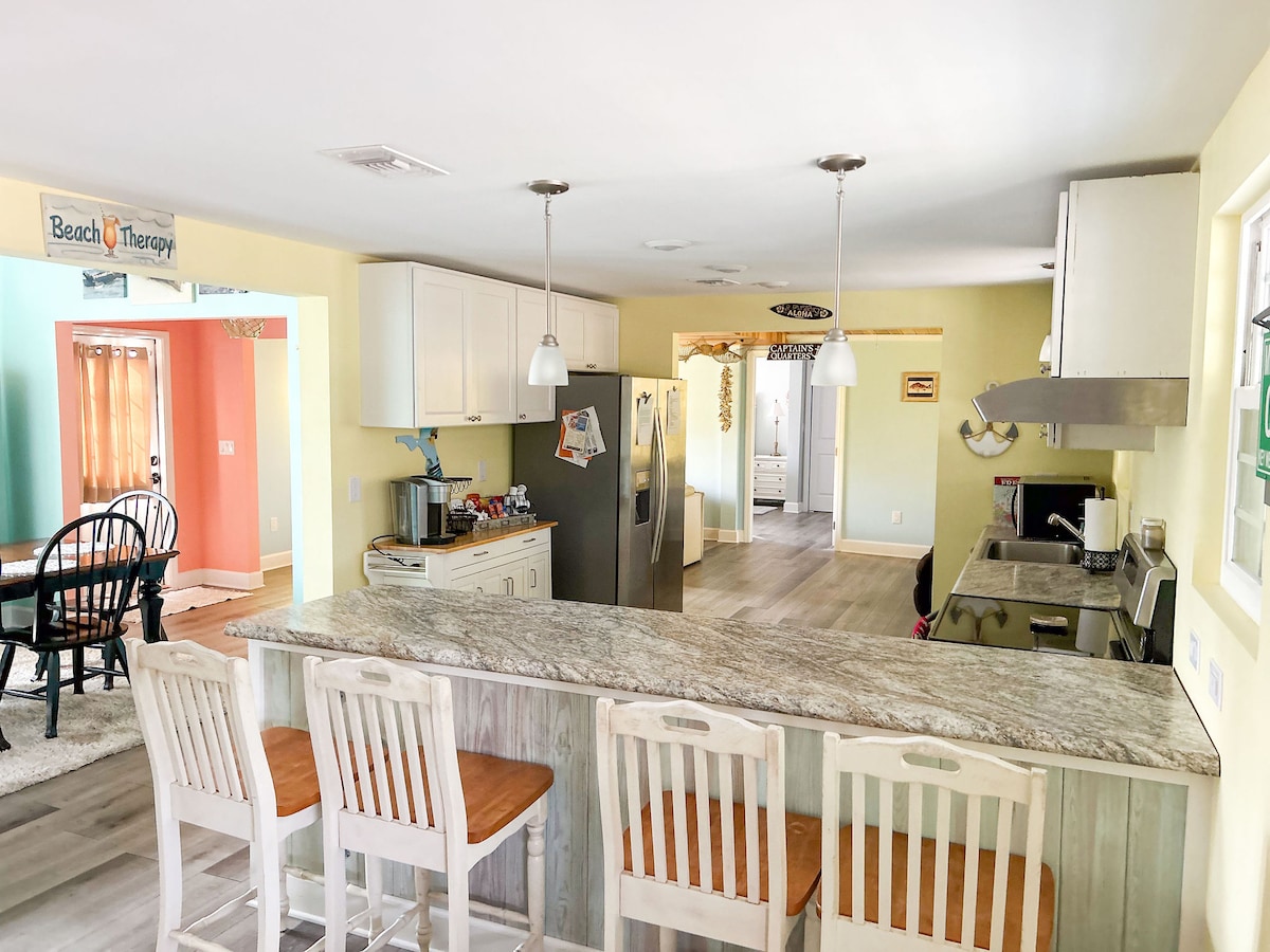Waterfront “Hooked on the Bayou.” This unique rare find is beautifully tucked away with the most amazing coastal views! It’s the perfect place for couples, families, fishermen, photographers, artists, boaters, kayakers, and if you love Sunrise and Sunsets you will find them breathtaking. Your private dock is great for fishing, paddle boarding or Kayaking. Embrace nature, the sun, salt air and the beauty. Make your trip truly unforgettable, where the bayou meets the bay, beach & sea.