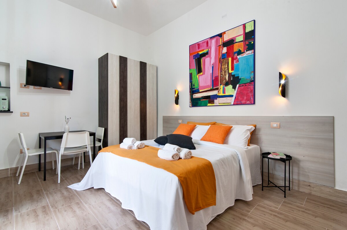 Opened in summer 2023, AREA 8 Nardò is just behind the main square Piazza Salandra and a stone's throw from the crystal clear water of the Porto Selvaggio nature reserve. The entrance is nestled just behind the bustle of the main square, super central yet very quiet. The first floor has a living area, airy bedroom and comfortable bathroom with a walk-in shower, bidet and electric window. Privacy is the keyword on for the stunning terrace furnished in contemporary Salentino style.