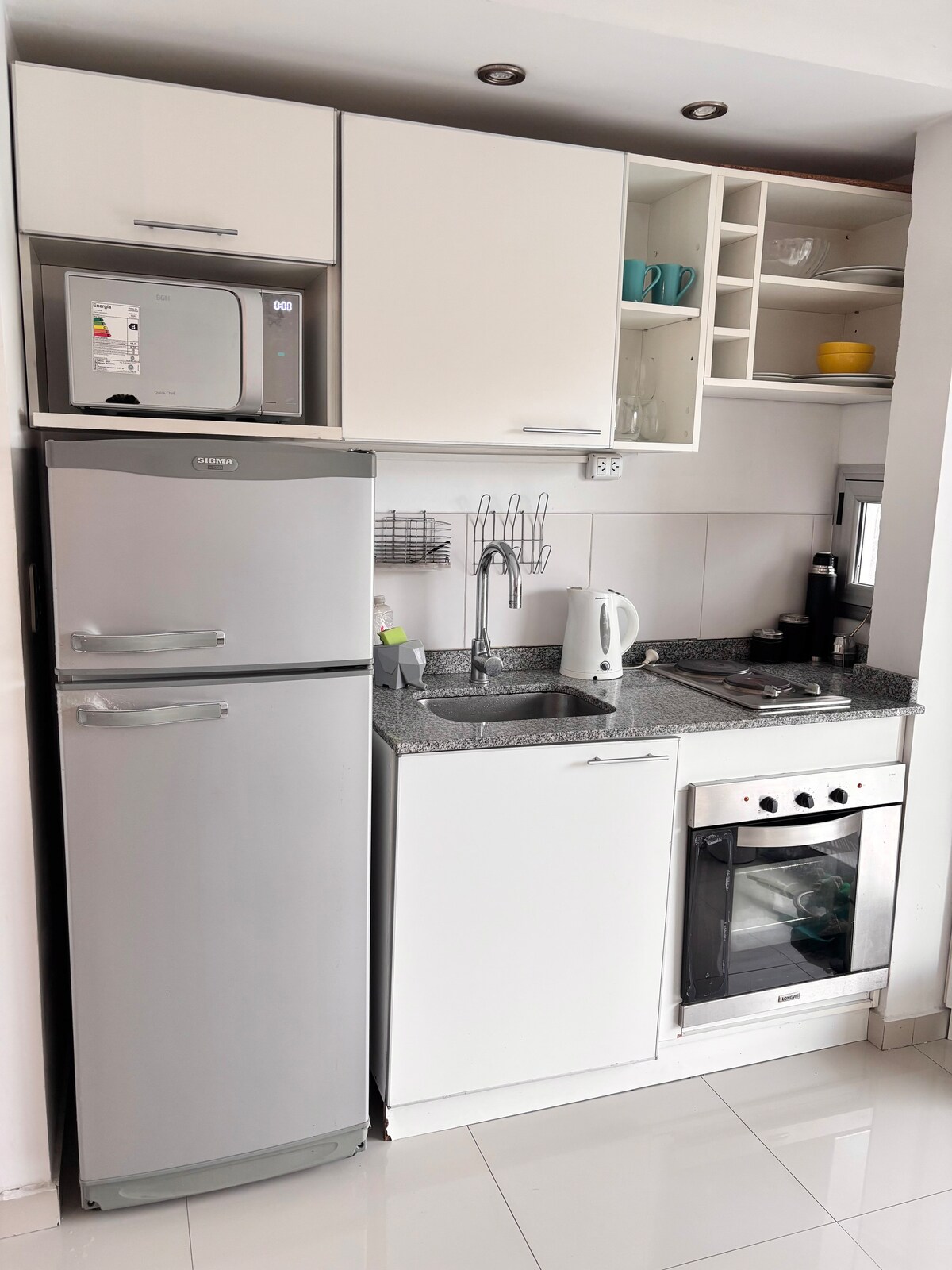 Studio chaleureux dans le centre de Castelar, idéal pour les séjours temporaires. Cuisine équipée, linge blanc, télévision et wifi. Situé dans le centre, à 2 pâtés de maisons de la gare. Le bâtiment dispose d'une sécurité et d'un laundry. Les services d'eau, d'électricité et de wifi sont inclus.