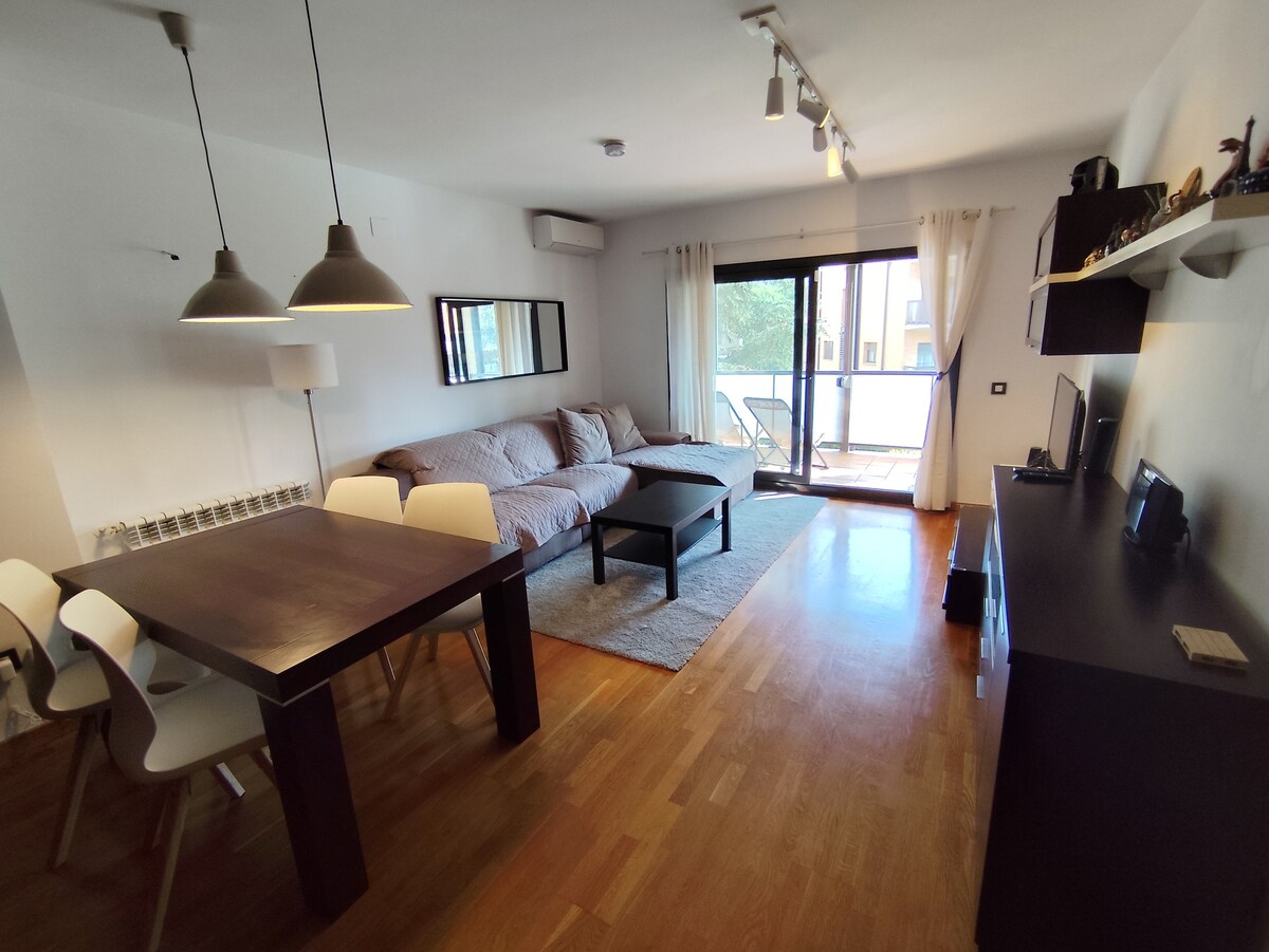 Cet appartement est idéal pour un couple, et le canapé peut également être converti en troisième lit si nécessaire. L'appartement de 50 mètres carrés dispose de deux chambres, de sa propre cuisine avec tous les appareils électroménagers, d'une salle de bain moderne et de sa propre terrasse. Vous avez deux entrées séparées de l'extérieur et de l'intérieur de la Masia, ainsi qu'une sortie vers le jardin. La climatisation, le chauffage, le WI-FI et les serviettes sont inclus.