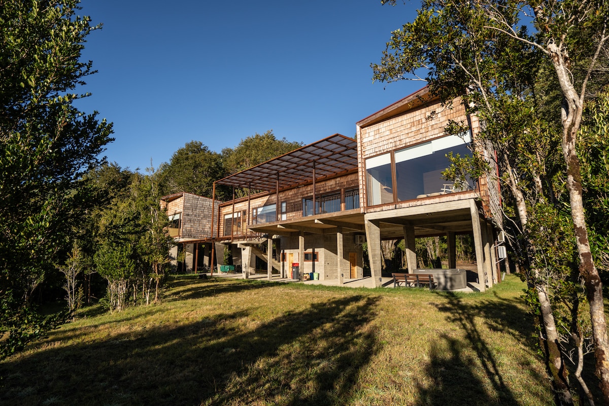 Vivez l'expérience du sud du Chili à son meilleur, dans un environnement unique et exclusif, créé pour profiter et contempler la région à chaque saison de l'année. Ici, vous aurez des panoramas inoubliables sur la flore et la faune de la région à vos pieds, ainsi que sur la chaîne de montagnes et le majestueux océan Pacifique. Tout cela dans un refuge entièrement équipé et conçu pour un séjour agréable. Nous mettons une attention très stricte aux toilettes et à l'hygiène des lieux, et nous serons à l'écoute de toutes vos besoins !