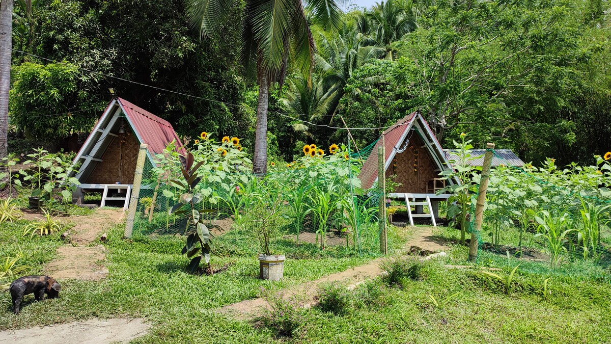 Profitez du son de la nature lorsque vous séjournez à la ferme. Renouez avec la nature lors de cette escapade inoubliable. Les invités peuvent participer à la plantation et à la récolte des cultures en saison. Les voyageurs peuvent également marcher jusqu'au mont Kankalaw pour admirer la vue imprenable majestueuse sur d'autres villes, la mer et les montagnes. Prenez un café tout en vous relaxant dans l'une de nos cabanes. Des porcelets indigènes, du poulet et d'autres animaux de ferme errent dans toute la région. Rencontrez Princess notre cheval à la ferme .