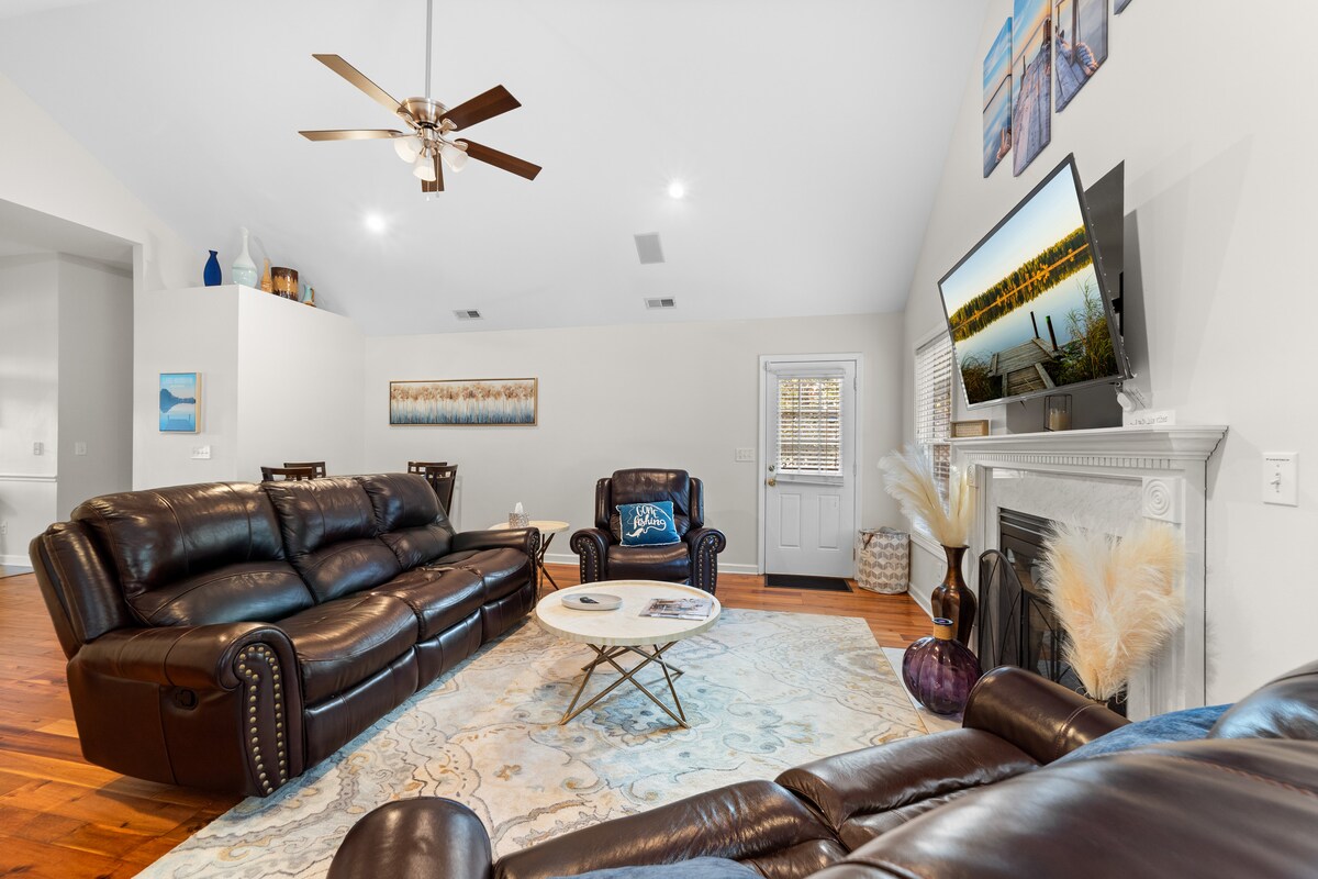 Cette maison de 4 chambres et 2 salles de bain récemment rénovée est parfaitement située pour que vous puissiez profiter de tout ce que Hickory et l'Université Lenoir-Rhyne ont à offrir. La maison dispose d'une suite parentale surdimensionnée avec cheminée, lit King Size, salle de bain luxueuse et dressing. Les trois chambres offrent deux lits Queen Size et deux lits jumeaux. Pendant votre séjour ici, vous trouverez un espace de travail dédié avec Internet haut débit par fibre optique, un salon divertissant, un coin repas intérieur et plusieurs patios extérieurs.