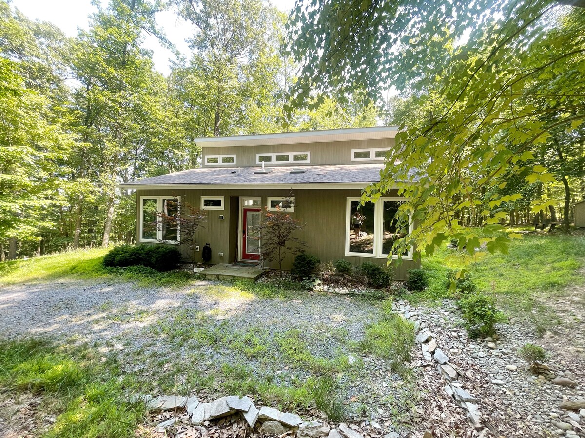 Célébrez votre moment privilégié dans un cadre chic et élégant, avec des équipements 5 étoiles, réservé aux couples adultes. Vous méritez le Sunset Rouge. C'est une destination dans un cadre décontracté et romantique pour échapper à l'anxiété des enfants, de la ville et du travail. Laissez la décoration amusante et la vue panoramique inspirer l'écrivain et l'artiste qui sommeille en vous. Pendant la journée, survolez les aigles à hauteur d'yeux. La nuit, levez les yeux vers le ciel pour voir une étoile filante. À moins de 2 miles se trouve le lac Shannondale avec un accès à la plage fourni par le Mountain Lake Club.