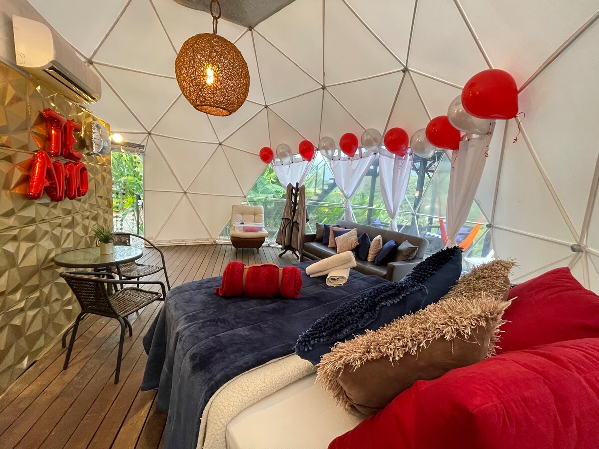 Disfruta del encantador Domo glamping en yn entorno rodeado se naturaleza y romántico en medio de un bosque cafetero reforestado