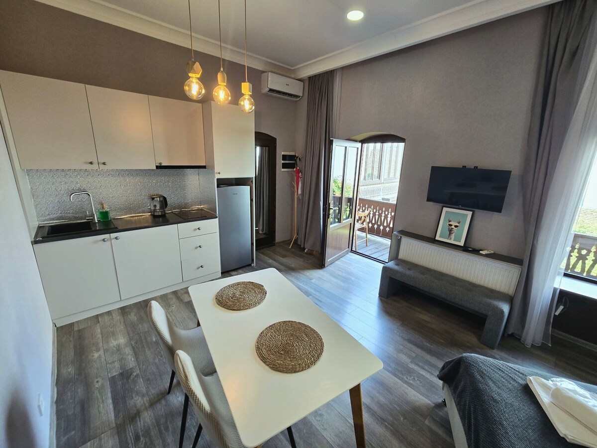 Bienvenue à la « Terrace Gallery », où chaque détail est dédié à votre confort et à votre plaisir. Cette élégante maison est située au cœur de Tbilissi, offrant intimité, confort et une expérience unique. Les invités sont accueillis avec une bouteille de vin géorgien sélectionné selon leurs goûts, des fruits frais de saison, du chocolat fin, du café, du thé et des boissons gazeuses. L'appartement dispose d'un intérieur design, d'une terrasse panoramique avec vue sur la ville, d'un mobilier haut de gamme et d'un accès par serrure intelligente pour une arrivée et un départ indépendants.