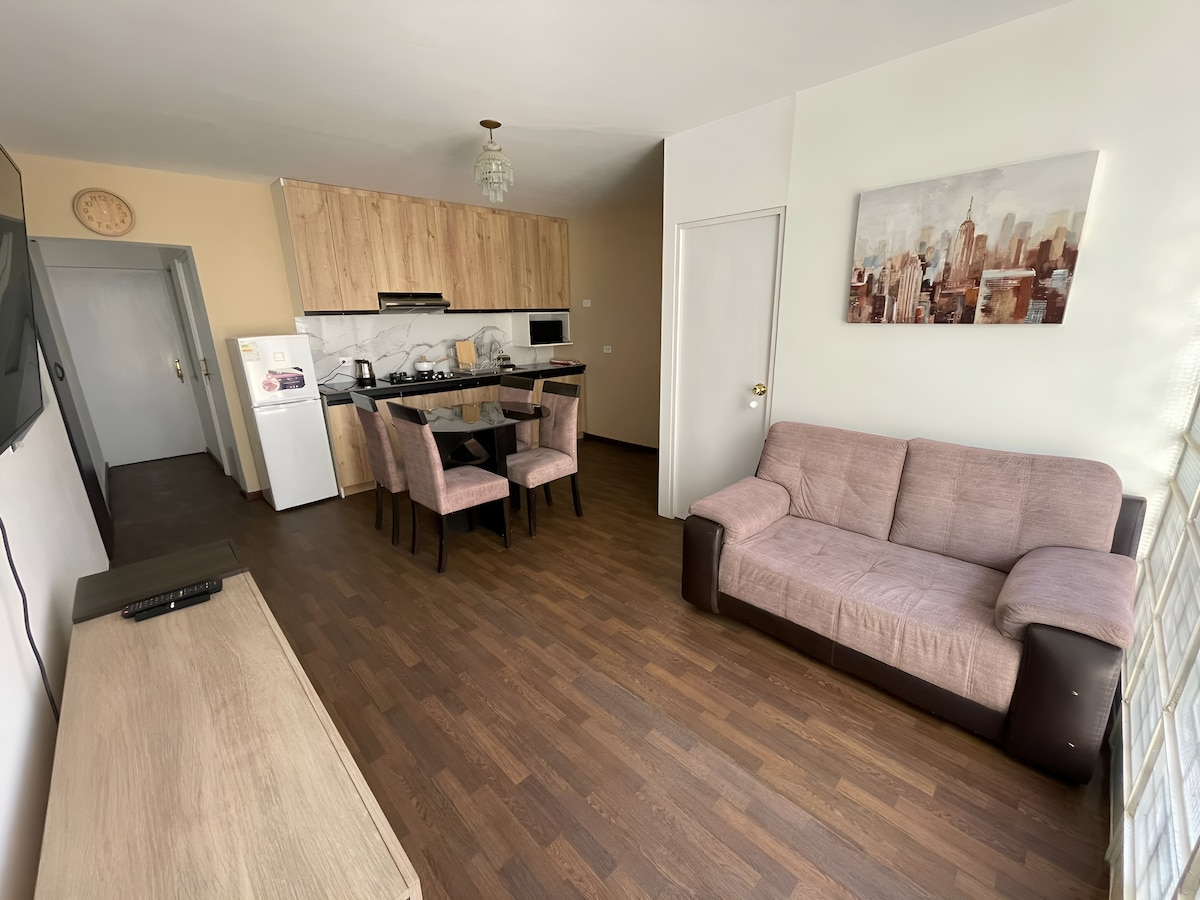 Cozy mini apartment fully equipped and located in the best district of Arequipa, just 3 blocks from the main malls, banks, 4 blocks from the Plaza de Cayma and very close walking to the Plaza de Yanahuara; very warm, lighted and ventilated; with views of a spectacular and unbeatable sunset from the living room and views of the imposing Misti volcano from the rooms. It is located on the fifth floor without an elevator at the moment. There is a construction in progress in front of the building.