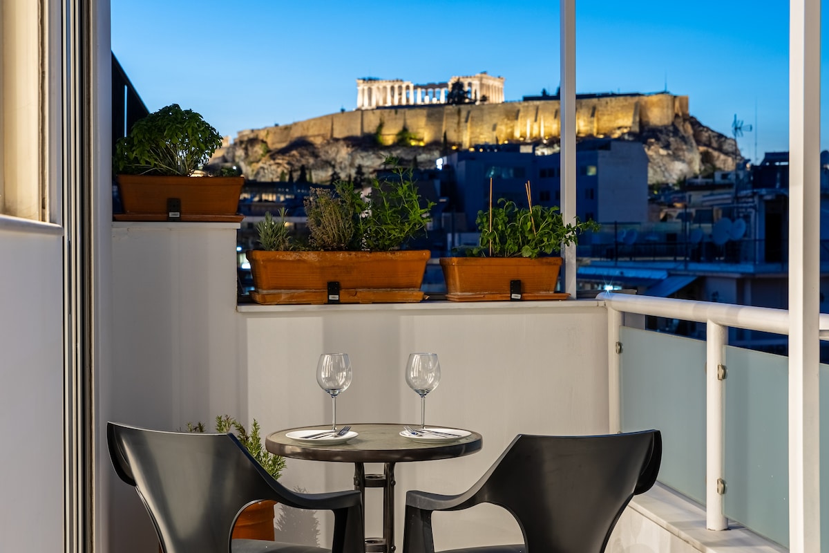Idéalement situé en plein cœur du centre animé d'Athènes Au 10e étage, offre une vue imprenable sur l'Acropole depuis le confort de votre véranda privée, jacuzzi ou lit. À 3 minutes de marche de la station de métro « Syntagma », qui relie la ville à l'aéroport, à côté du quartier commerçant et à proximité des principaux sites archéologiques. Pour n'en nommer que quelques-uns : la vieille ville de "Plaka" et "Monastiraki", "Acropolis" site & Acropolis Museum, "Temple of Zeus" . Licence 1909300