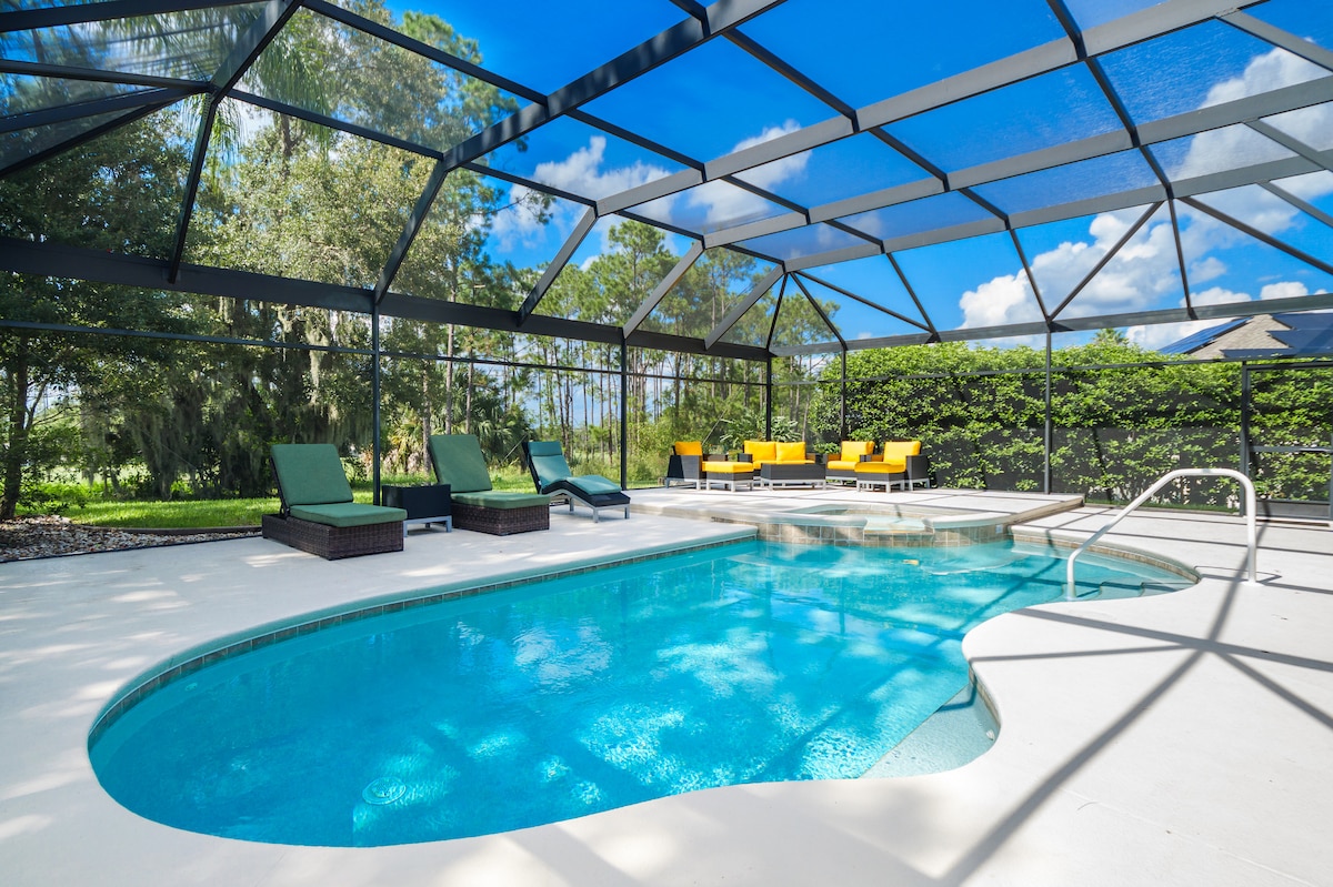 Superbe villa au coucher du soleil. Piscine d'eau salée et spa spectaculaires. Sur le terrain de golf sécurisé de Highlands Reserve. Belles vues sur la conservation et le terrain de golf. Villa de luxe sur mesure avec 3 grandes chambres, 2 salles de bains et canapé convertible occasionnel dans le salon. Fabuleuse terrasse, vue privée. À distance de marche des transports en commun, des magasins, des restaurants ou à 5 min en voiture. À 15 min de Disney, 35 min d'Universal. Chauffage de la piscine/du spa conseillé en octobre/avril moyennant des frais supplémentaires. Il y a une sonnette dans la propriété. AUCUNE recharge de VE autorisée dans la propriété.
