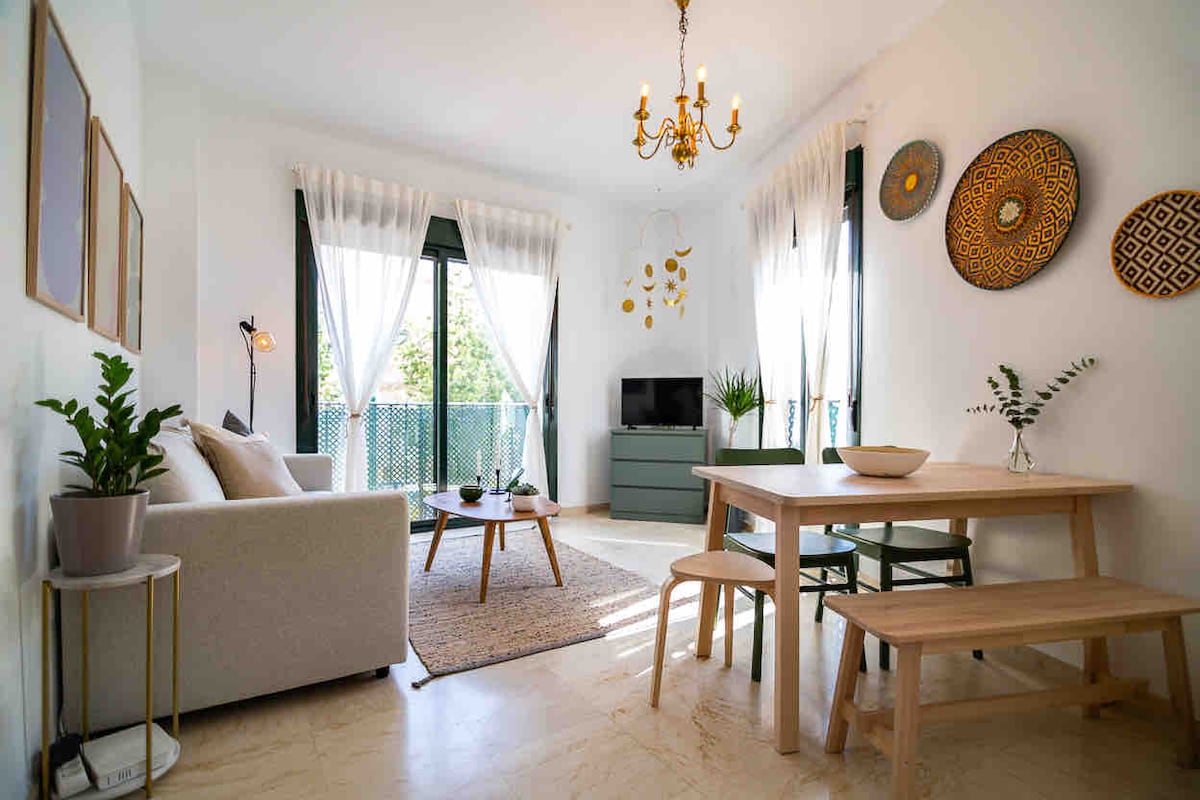 Le bois naturel et le béton se marient pour créer des espaces modernes et élégants dans toute la maison. Admirez la vie végétale vibrante et les motifs audacieux qui accentuent chaque pièce, du salon ouvert au balcon privé ensoleillé à l'extérieur. Cette « oasis » est un espace vraiment unique. Un grand salon lumineux avec une cuisine ouverte reliée à une terrasse généreuse. Sur la terrasse, vous pourrez profiter de la vue dégagée sur un très grand jardin avec de vieux pins et de grands palmiers. Les trois chambres sont très grandes et confortables. L'une d'elles avec un accès direct sur la terrasse. La grande salle de bain confortable a une décoration de style africain et, comme le reste de la maison, des matériaux naturels comme le bois et le béton. Le quartier est calme mais également situé au cœur de Malaga. Vous pouvez rejoindre les principaux monuments et le quartier historique en quelques minutes à pied. Vous pouvez me contacter par l'application ou via WhatsApp, SMS ou appel téléphonique. Ce logement se trouve dans un quartier calme du centre-ville. De là, vous pourrez facilement rejoindre à pied les monuments emblématiques et les sites historiques de Malaga. Pour des restaurants savoureux, des boutiques amusantes et des bars animés, explorez les rues et le port. L’appartement est très bien situé. Il est très facile d'arriver dans la zone touristique à pied, mais il y a aussi 2 lignes de bus qui traversent la rue devant le bâtiment (ligne 1 et ligne C1). Dans les environs, il y a de nombreux services, un grand supermarché et un très beau marché typique (Mercado de Salamanca).