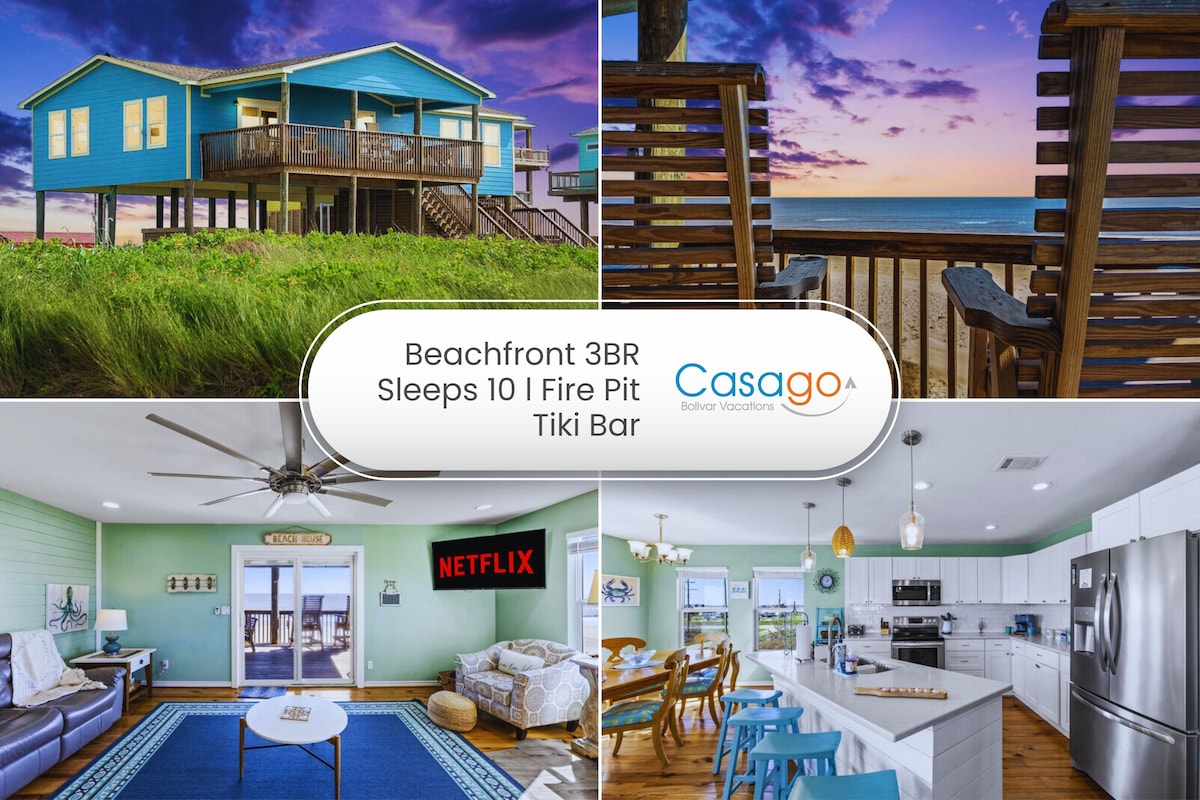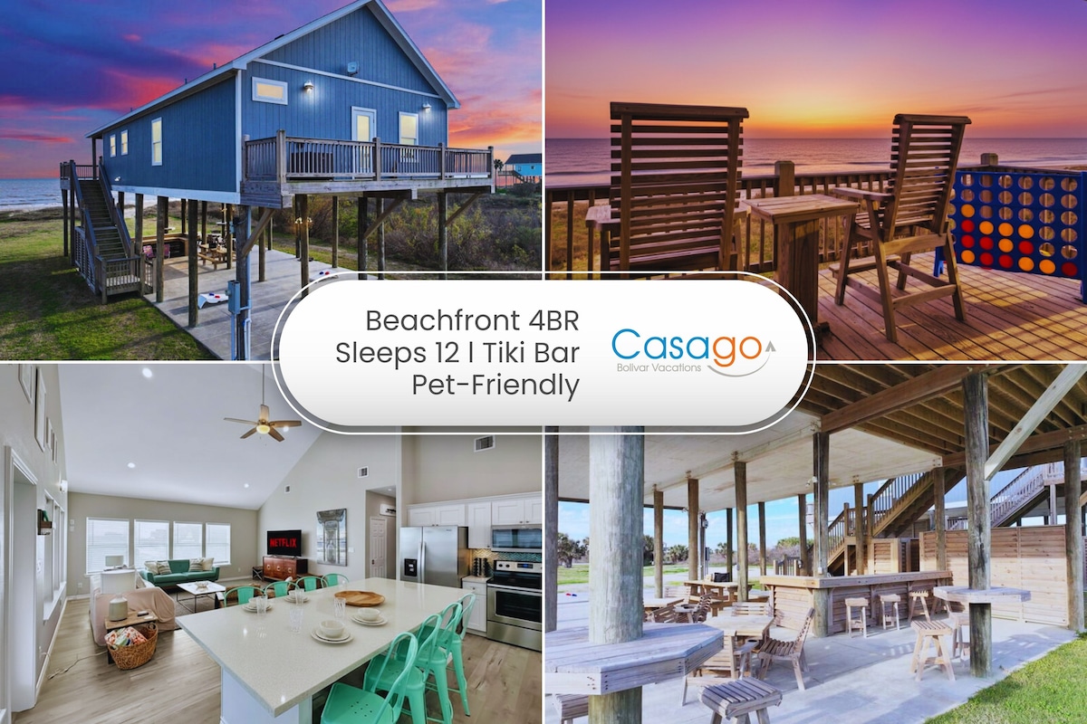 Beachfront 4BR | Tiki Bar, Yard Games, Smart TVs