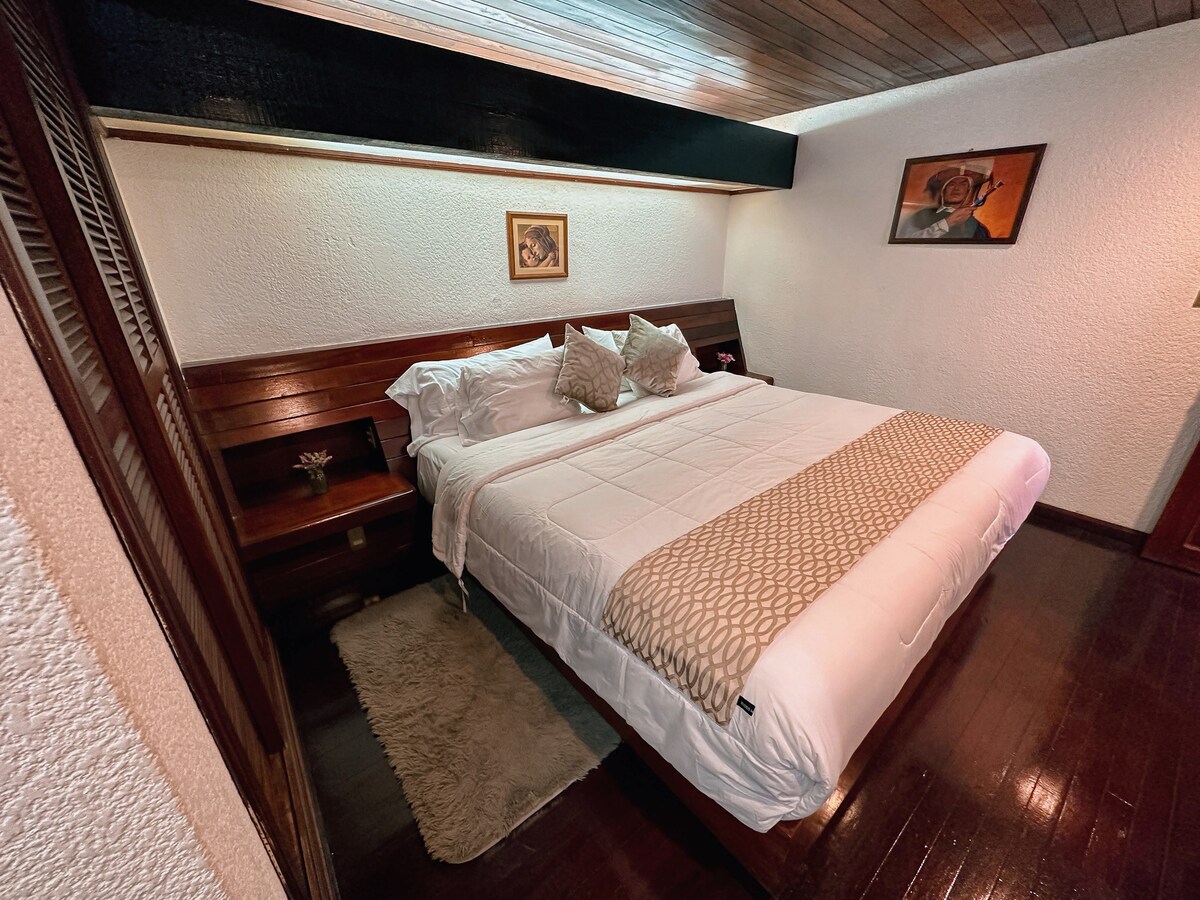Évadez-vous à San Cristóbal ! Ce homestay entièrement privé dans le quartier animé de Guadalupe vous attend, à seulement 15 minutes à pied du parc central. Idéal pour les couples/nomades numériques, il offre une grande chambre (Queen), un canapé-lit double, 2 salles de bains, une cuisine équipée, un balcon et une terrasse privée pour profiter du soleil et du climat de Sancris. Comprend lave-linge/sèche-linge, Smart TV, bureau et Internet haut débit. Votre base idéale pour vivre la magie du Chiapas !
