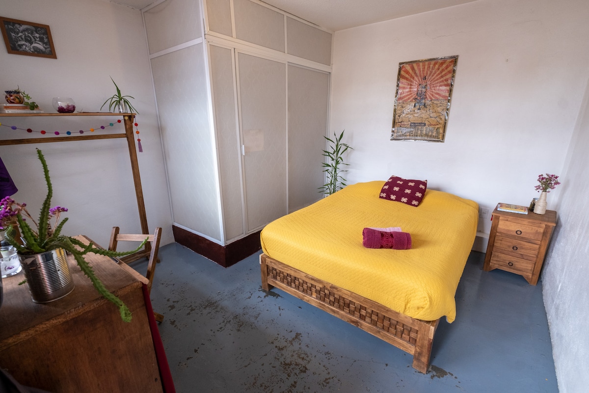 C'est un espace central, spacieux, propre, confortable et très chaleureux, dans lequel vous vous sentirez comme à la maison. Il est situé à seulement cinq pâtés de maisons du Zócalo. L'entrée et le jardin d'accès sont partagés avec la famille et les amis, car une partie de la maison appartient à la grand-mère.