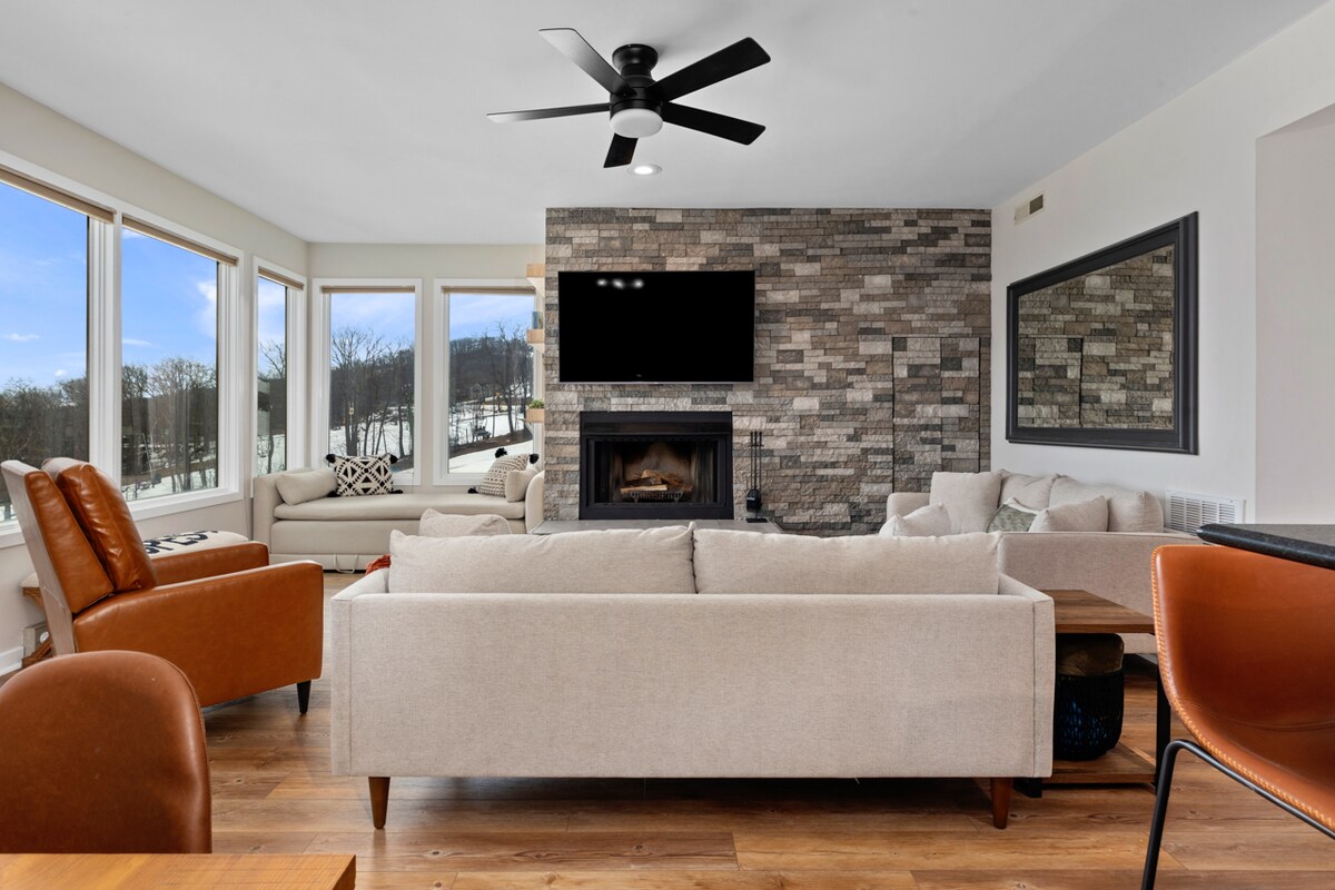 Oubliez vos soucis dans ce logement spacieux et serein. L'appartement a été entièrement rénové et peut être apprécié toute l'année ! Situé entre le Wintergarden Spa, la Nature Foundation et le Devils Knob Sports Center (golf, tennis et restaurant gastronomique), le quartier de Stone Ridge est idéalement situé par rapport à la plupart des équipements du complexe hôtelier. À 5 minutes en voiture des pistes À 5 minutes du marché À 15 minutes de Devils Backbone À 3 minutes du terrain de golf Devils Knob