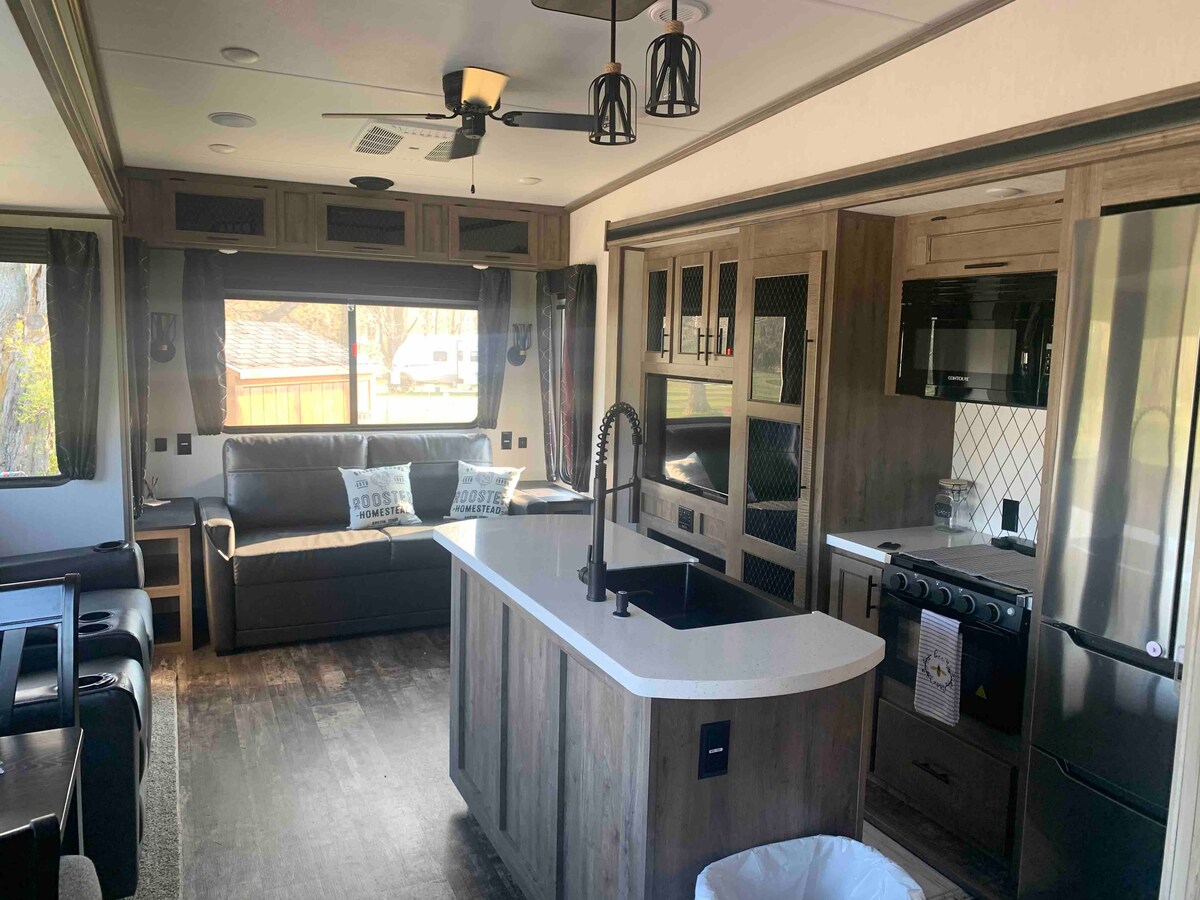 Reconnect and enjoy a private hideout in this beautiful RV. We can deliver within a 25 mile radius of Indian River. Whether you are in need of a place to stay on a relatives property or want to visit a campground, we can accommodate! Let us know where and when and we will set everything up! All you need to do is show up and relax! Indoor & outdoor showers. Master bedroom. Fridge, stove, microwave, and pantry! Great A/C Unit!